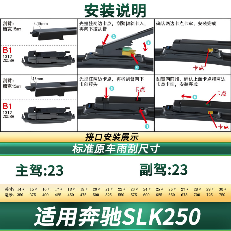 Tags: automotive wiper refills, benz slk250 wipers, car exterior accessories, frameless wipers, silent wiper arm, windshield wiper blades