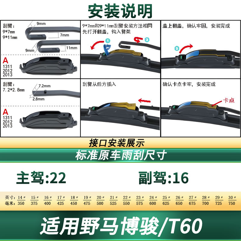 • Custom fit design provides a direct replacement for Yema Bojun and T60 original equipment wiper blades.