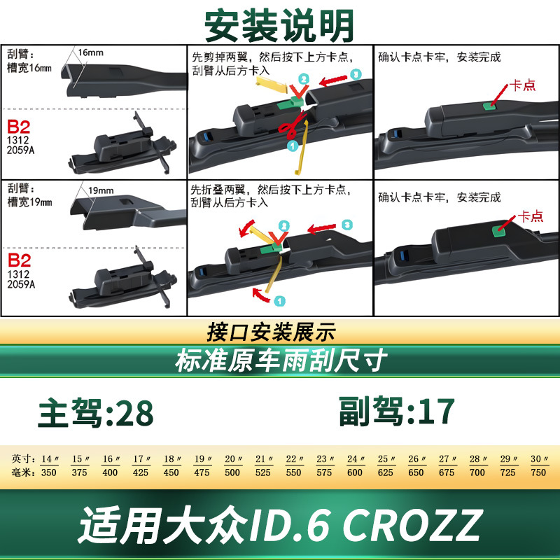 - Custom fit design specifically engineered for high compatibility with VW ID.6 CROZZ original wiper interface.