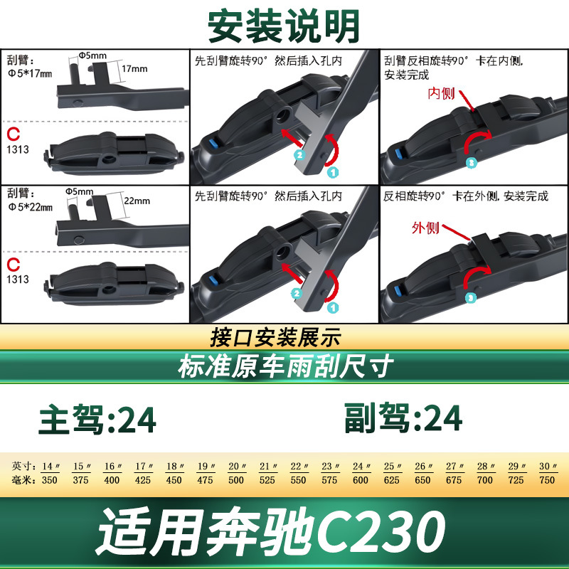 Upgrade your driving visibility with high-performance frameless windshield wiper blades for Mercedes-Benz C230. Silent, streak-free, and easy to install.