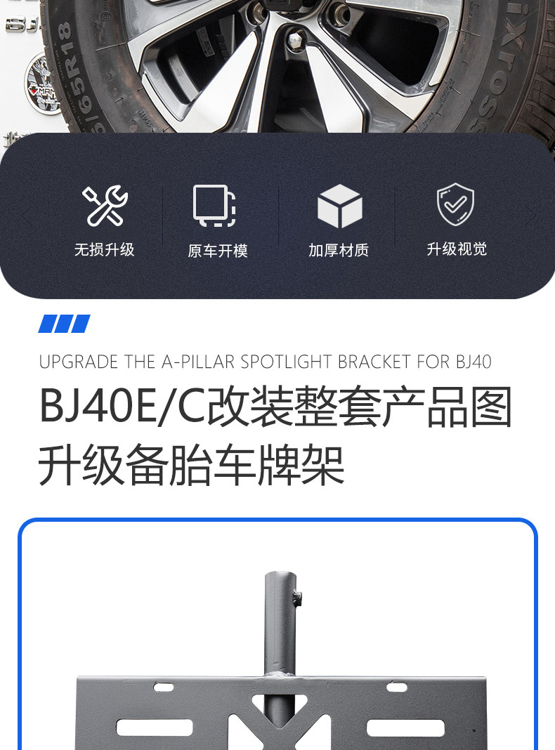 Tags: antenna base, BJ40E parts, flagpole holder, license plate bracket, off-road accessories, spare tire mount, utility bracket
