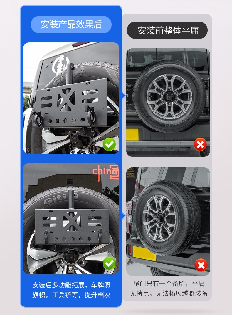 Be the first to review “Multi-Functional Spare Tire License Plate Holder with Antenna and Flagpole Mount for BJ40E” Cancel reply