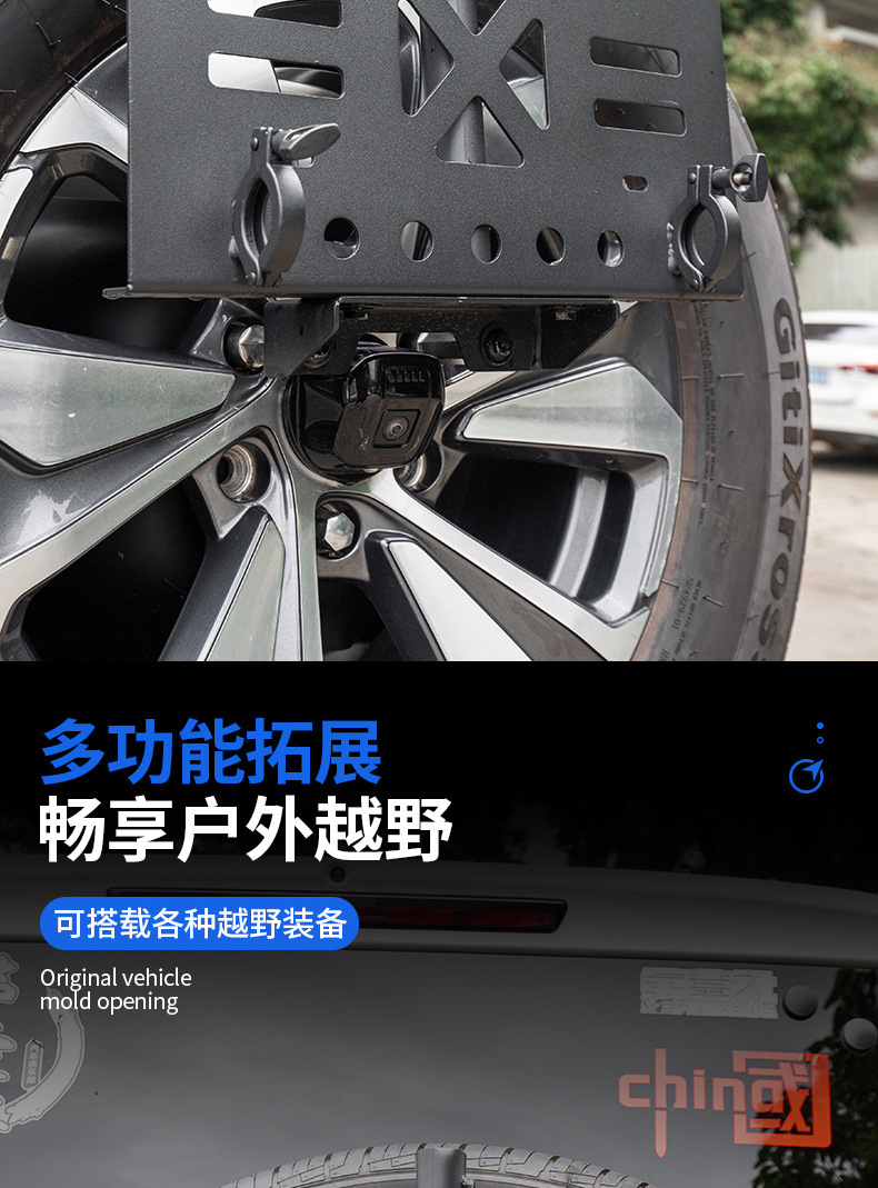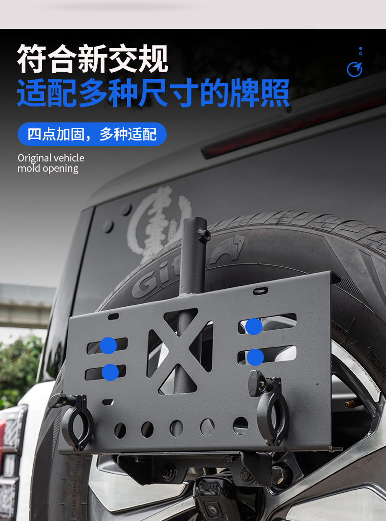 Multi-Functional Spare Tire License Plate Holder with Antenna and Flagpole Mount for BJ40E
