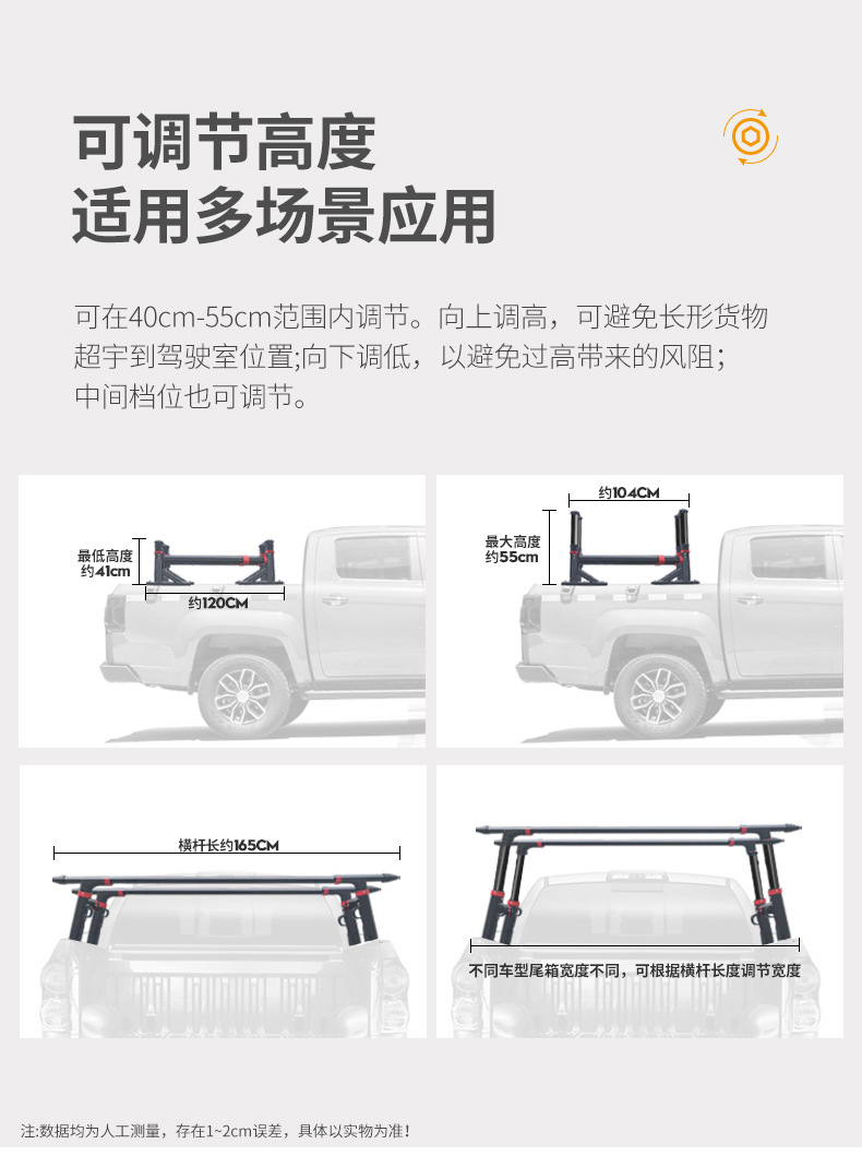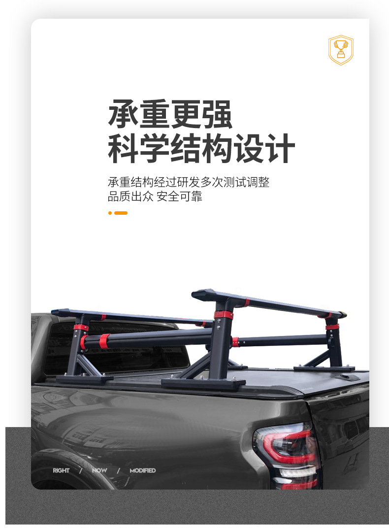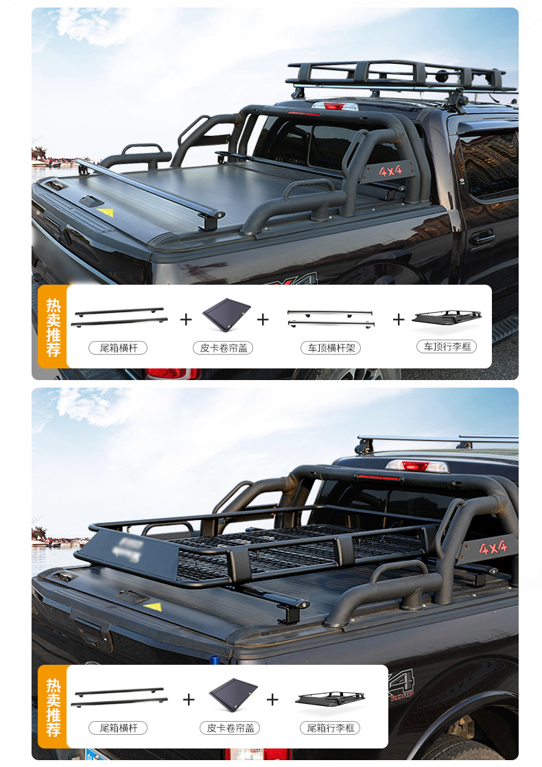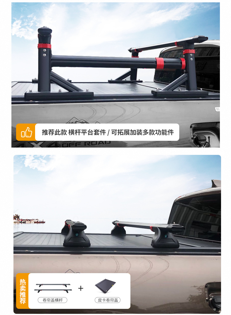 - Integrated crossbar design increases storage efficiency and provides stable support for various truck bed accessories.