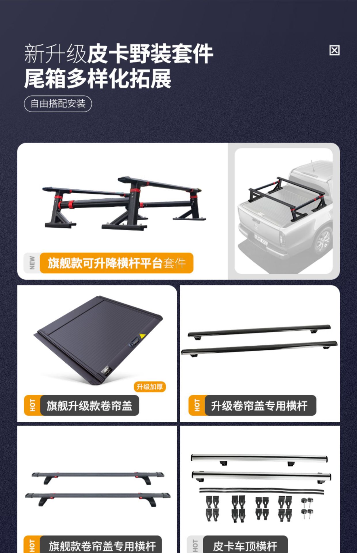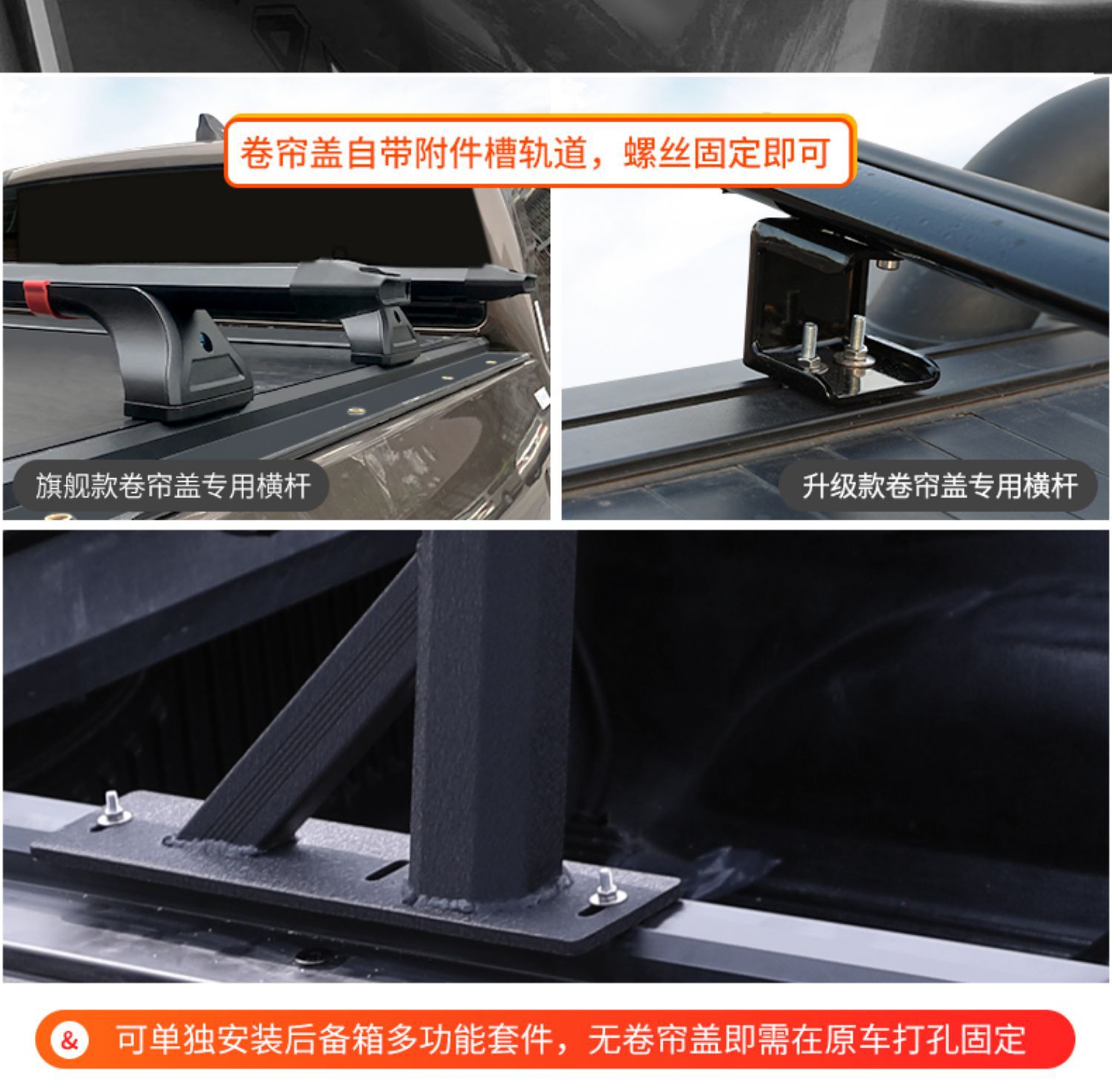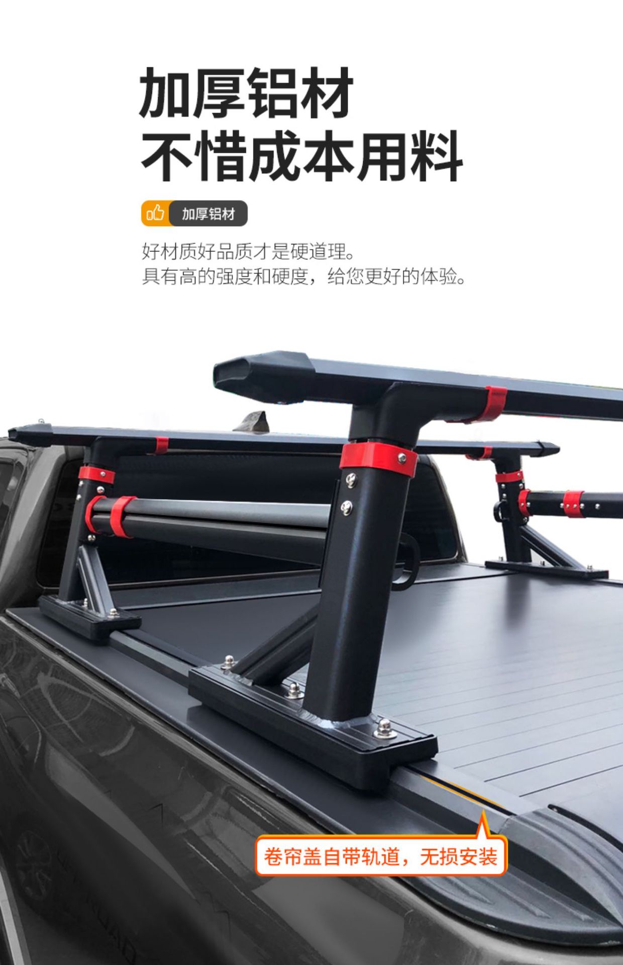 - Integrated crossbar design increases storage efficiency and provides stable support for various truck bed accessories.