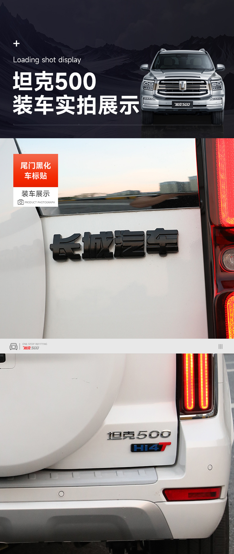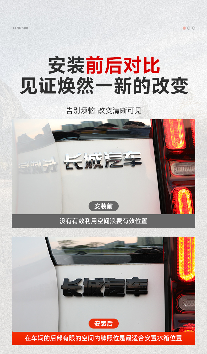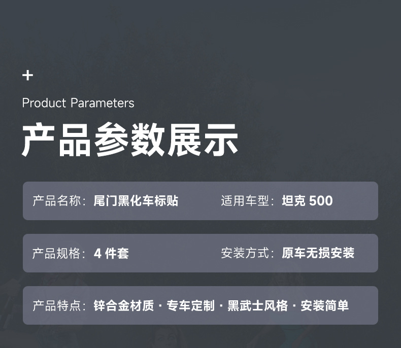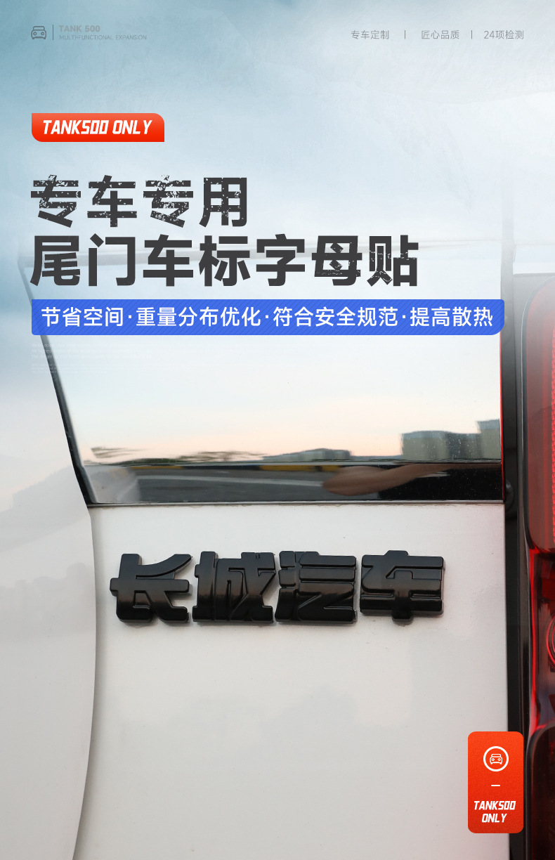 New 26 Models of Tank 500 Hi4Z/T Tailgate Blackened Car Logo Tank Letter Emblem Cover-Style Black Warrior Appearance