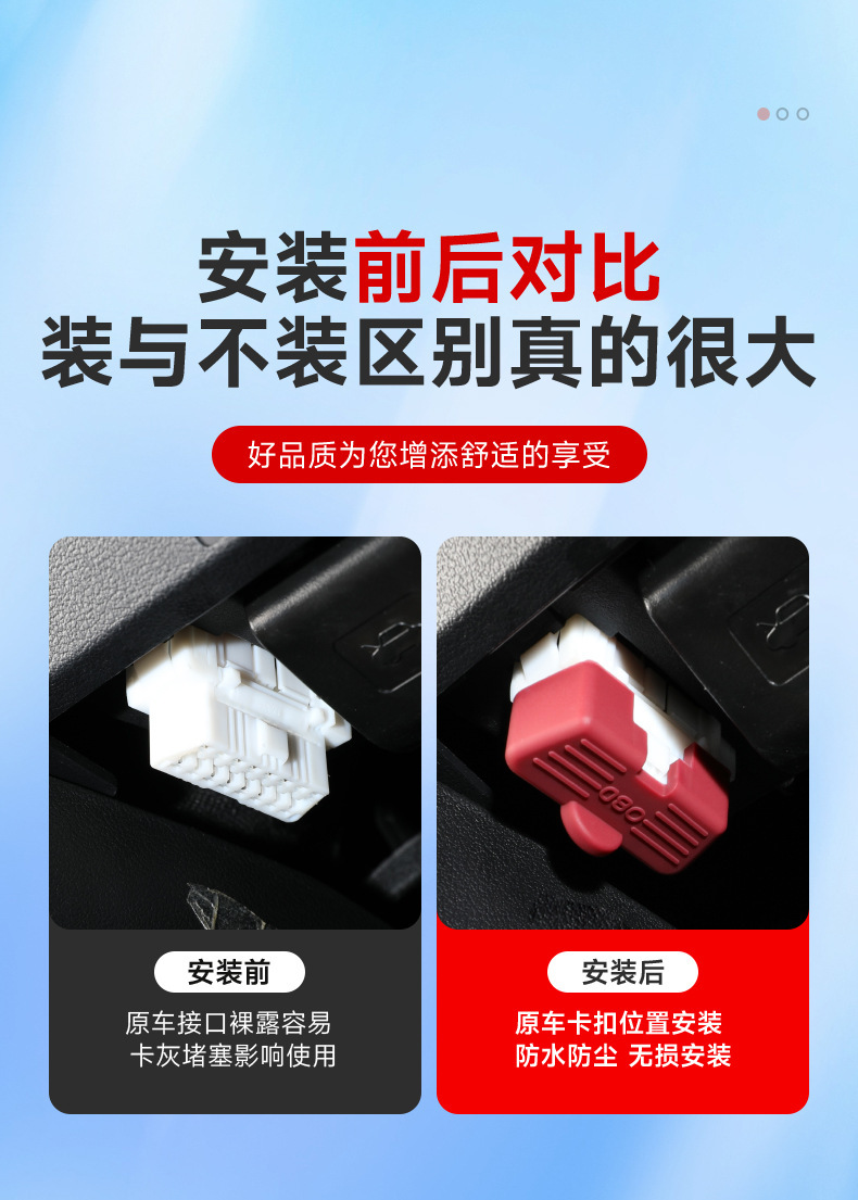 - Low-profile aesthetic integrates seamlessly with the vehicle interior while preventing pin oxidation and connection issues.