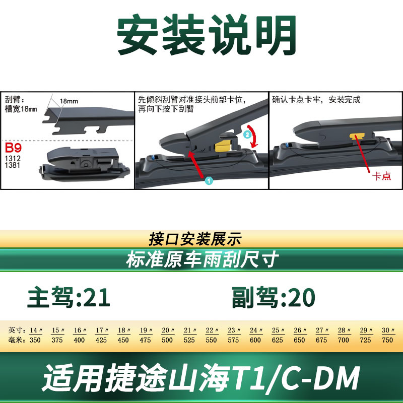 OEM Premium Frameless Windshield Wiper Blades Silent Rubber Refills for Jetour Shanhai T1/C-DM