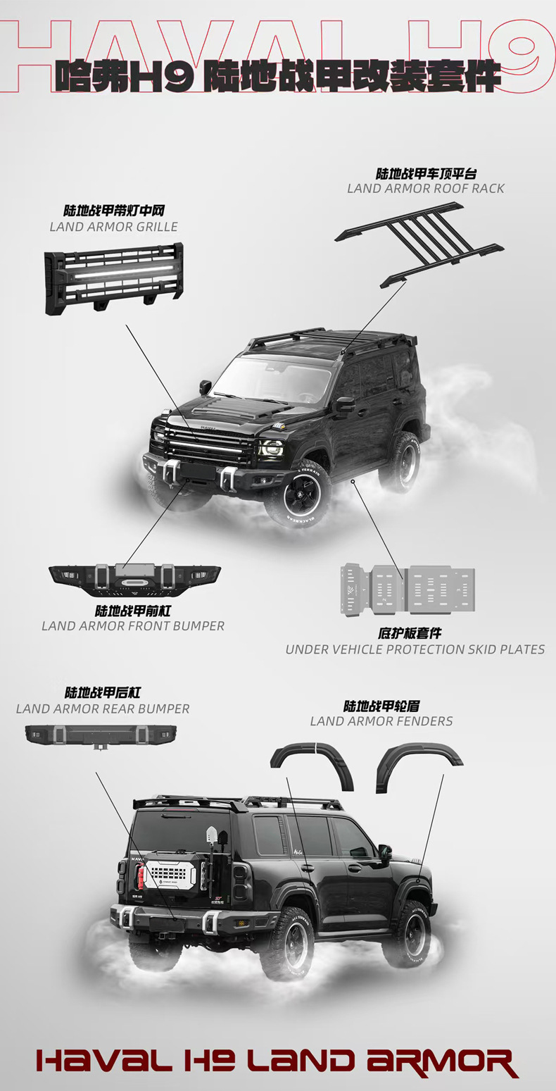 Off-Road Body Kit Upgrade Kit with Roof Rack Platform Front Grille and Rear Bumper Compatible with Haval H9