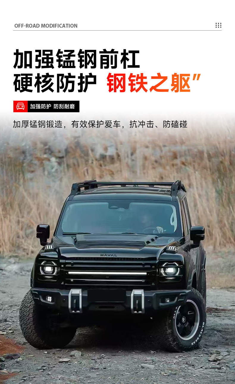 Upgrade your SUV with this heavy-duty off-road body kit featuring a roof rack platform, front grille, and rear bumper for enhanced durability and rugged style.