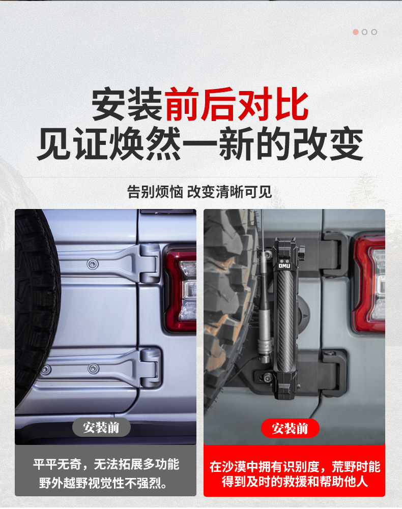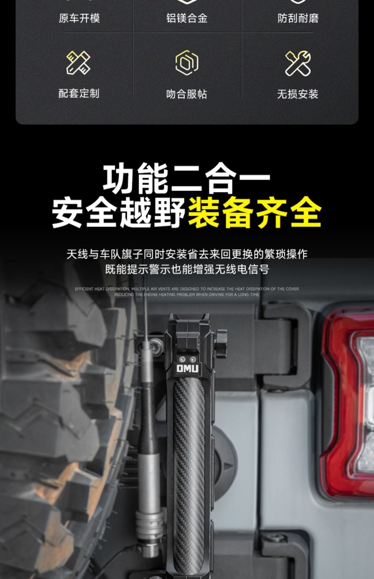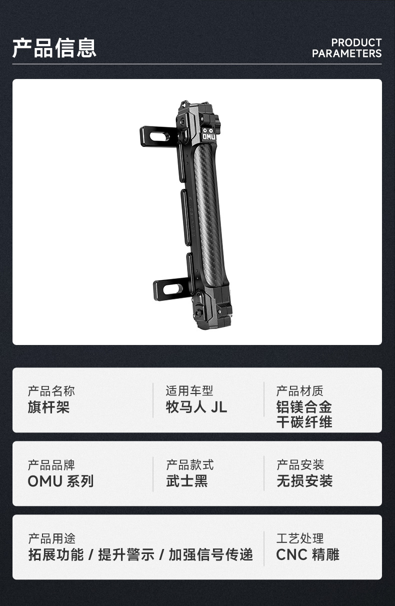 Off-Road Dual-Functional Flag Pole and Antenna Bracket Mount for Jeep Wrangler JK JL 2007-2024