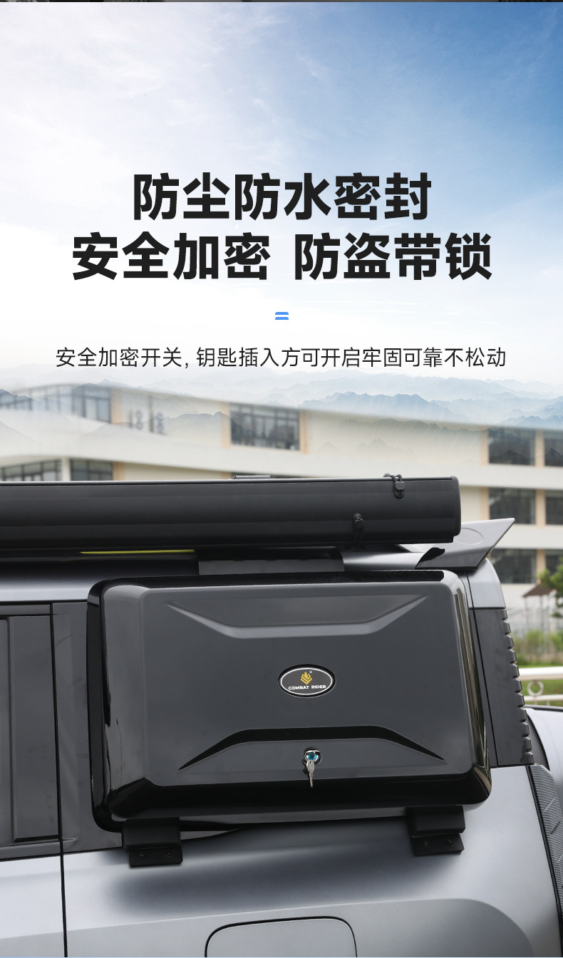 - Features a robust locking mechanism to ensure secure storage of items during bumpy terrains and highway speeds.