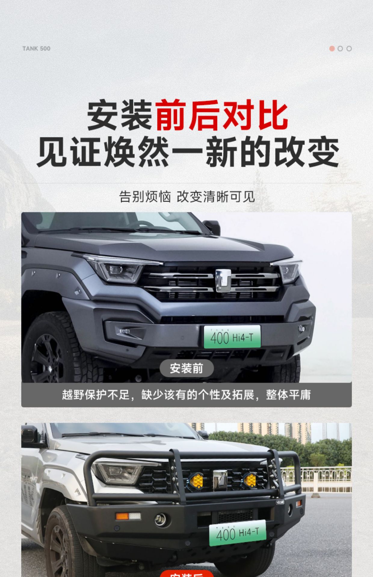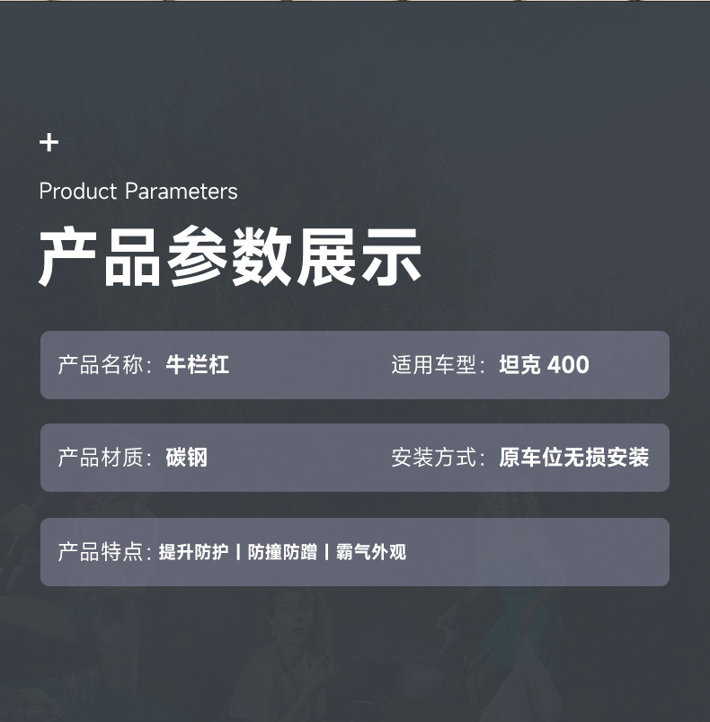 Off-Road Front and Rear Bull Bar Kit, Manganese Steel Heavy Duty Protection Bumpers for Tank 400 Hi4-T