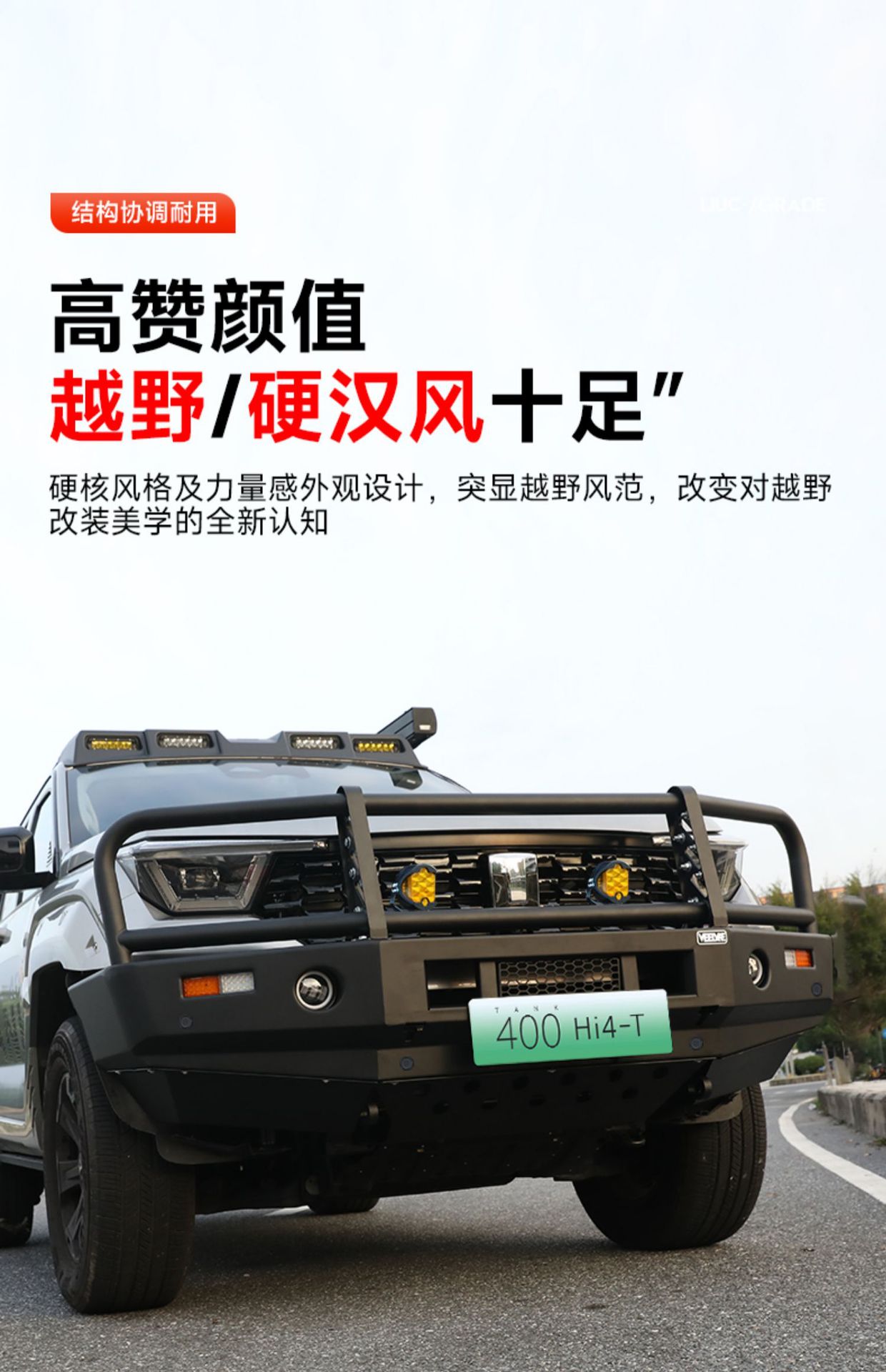 - Engineered specifically for the Tank 400 Hi4-T to ensure precise structural alignment and enhanced vehicle aesthetics.