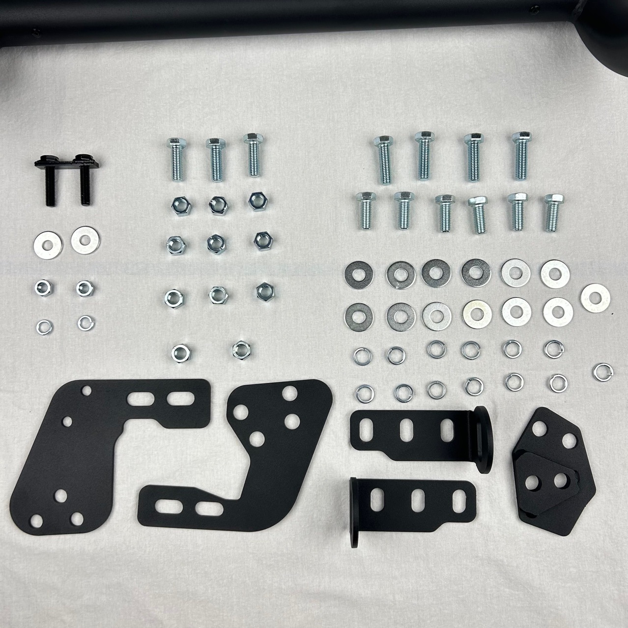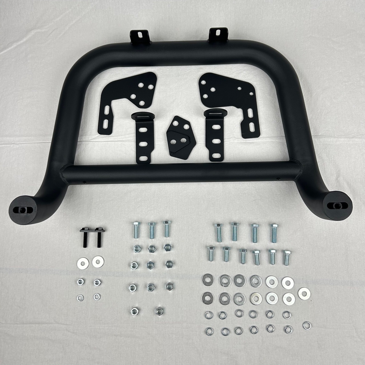 A: Yes, the top horizontal bar provides a stable platform for mounting auxiliary LED pods or light bars, though additional mounting brackets may be required depending on your light set.