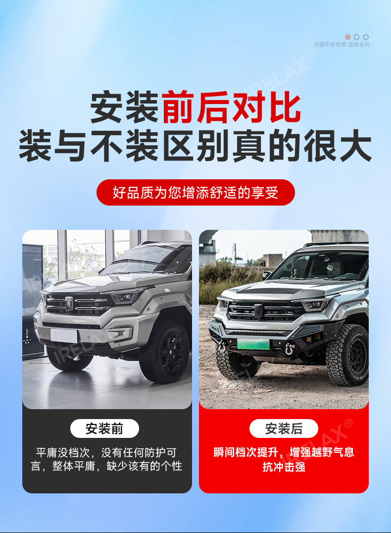 - Specifically designed for off-road enthusiasts to improve vehicle approach angles and overall rugged aesthetics.