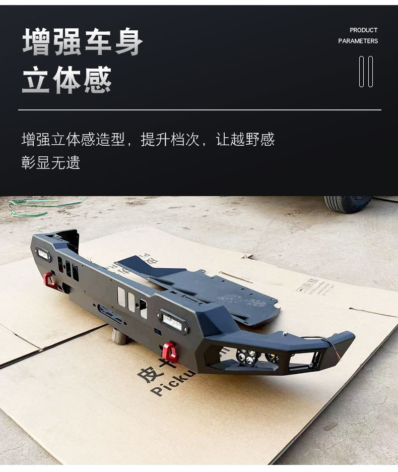 Tags: bull bar protector, dual energy hybrid bumper, exterior truck armor, front fascia protection, metal bull bar, off-road front bumper, pickup headlight guard