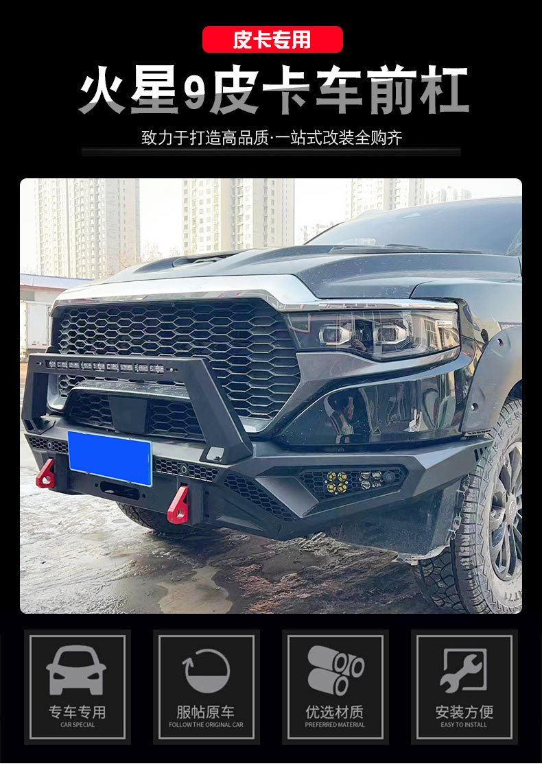 Off-Road Front Bumper Guard with LED Lights and Winch Mount for Foton Mars 9
