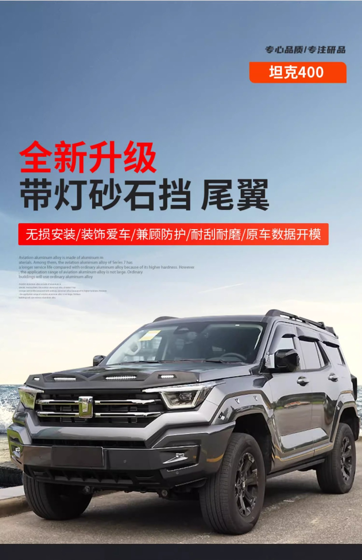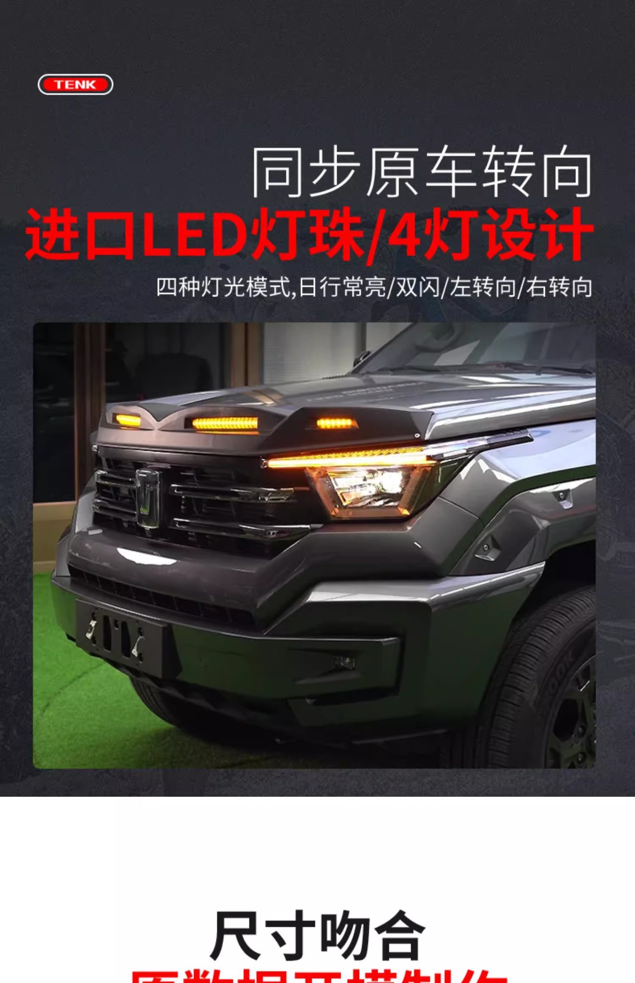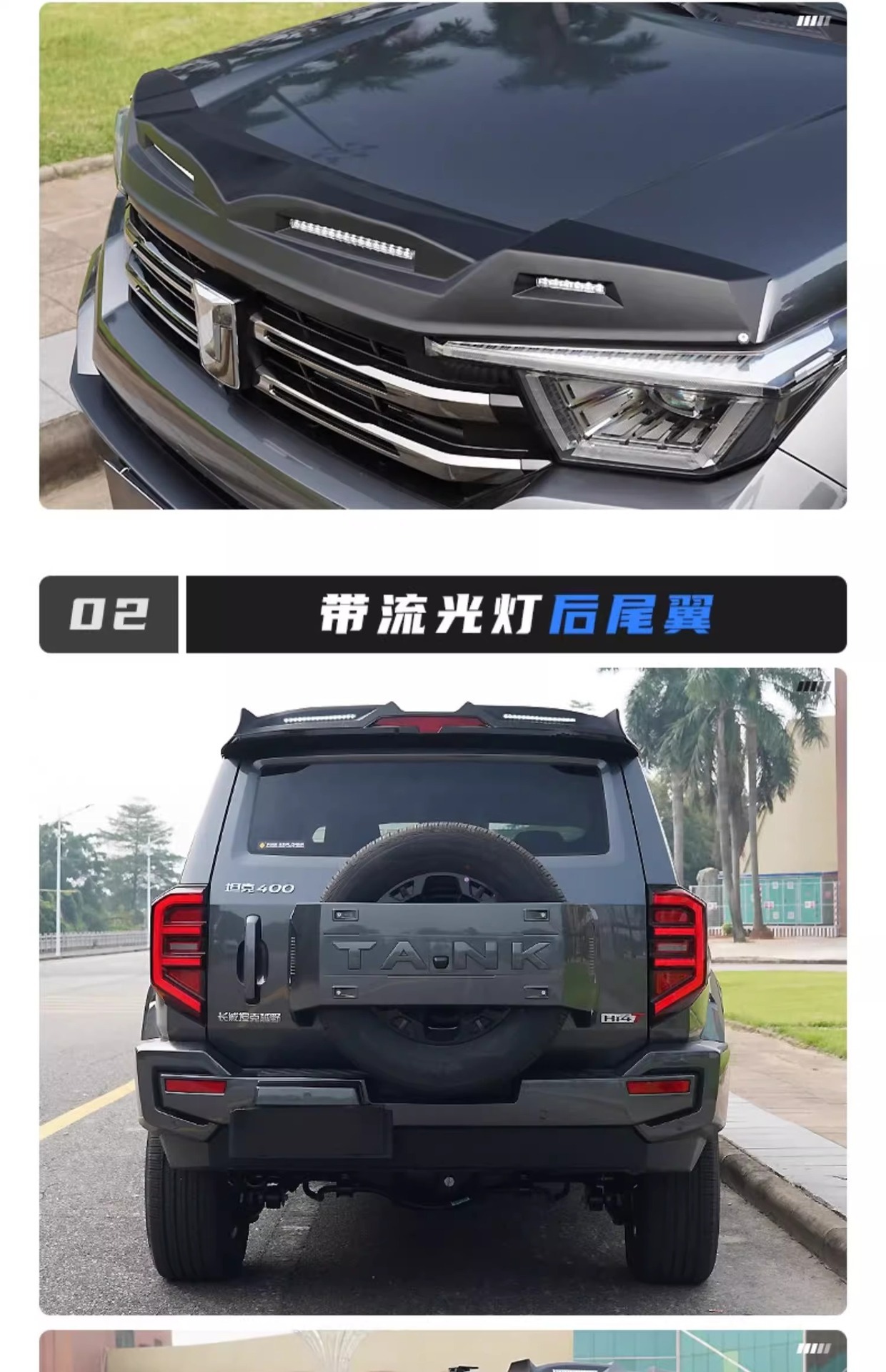 Off-Road Hood Bug Deflector with LED Running Light and Rear Wing Spoiler for Tank 400 Hi4-T Exterior Modification