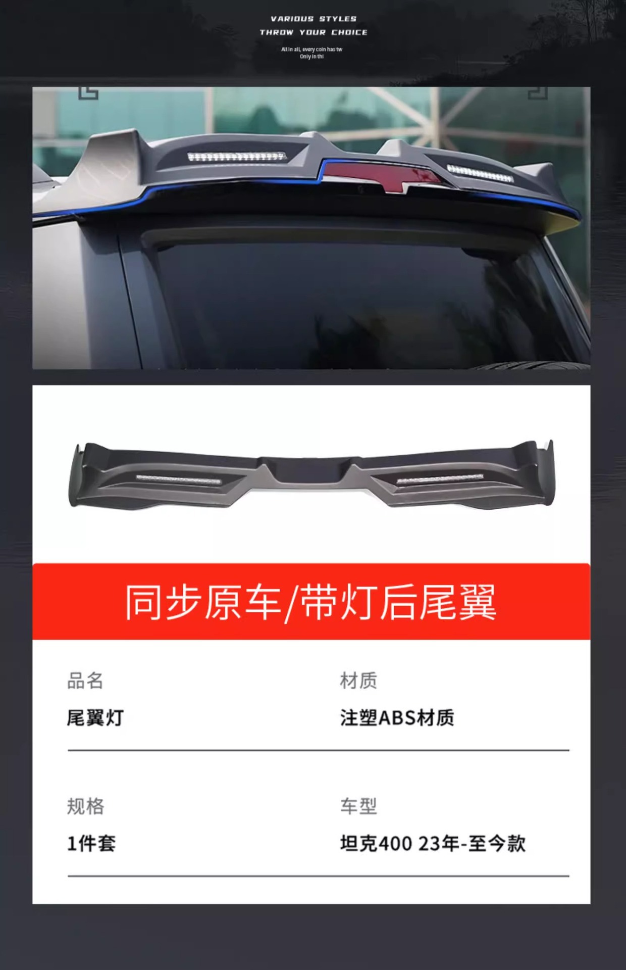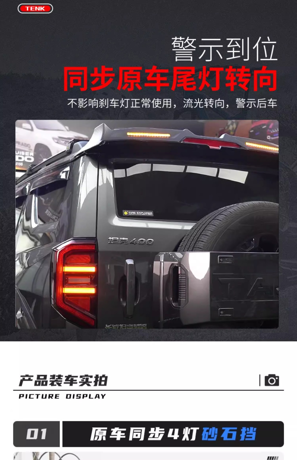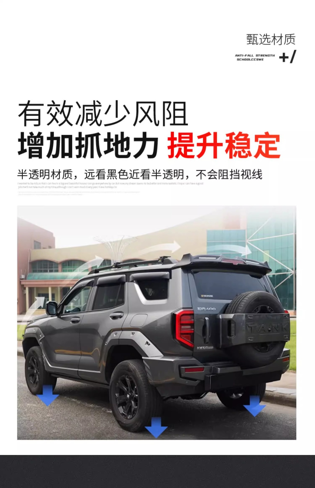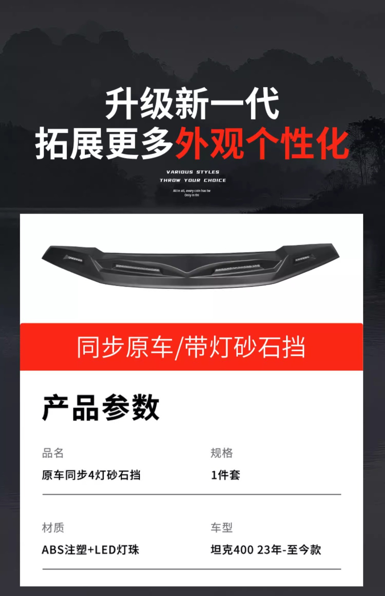 Off-Road Hood Bug Deflector with LED Running Light and Rear Wing Spoiler for Tank 400 Hi4-T Exterior Modification