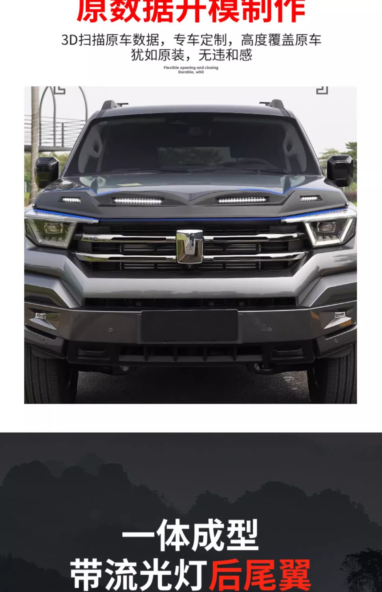 - Integrated LED Lighting: Features dynamic LED streamer lights that enhance vehicle visibility and provide a modern off-road aesthetic.