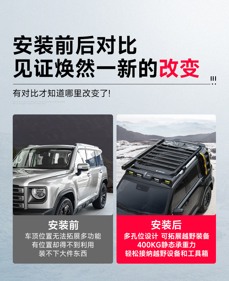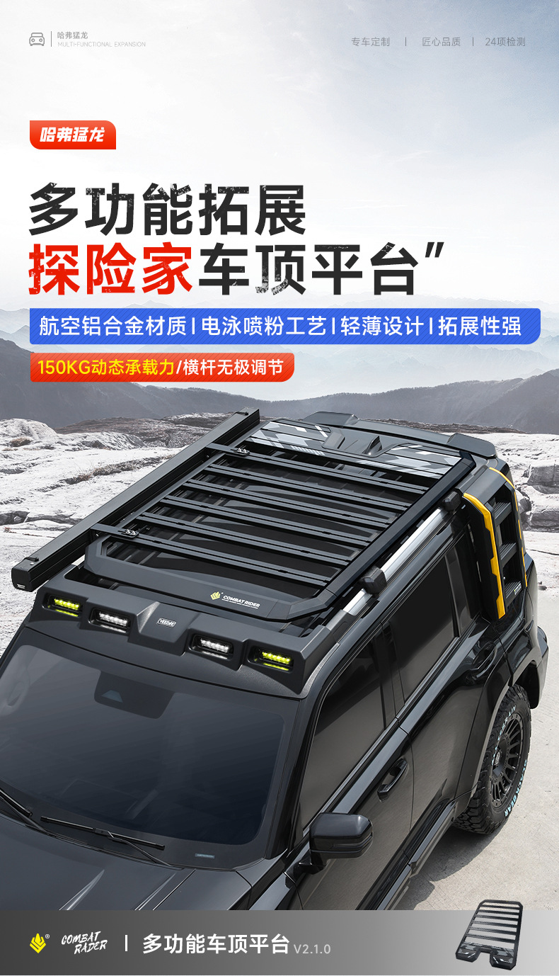 Tags: car side ladder, exterior car rack, Haval Raptor accessories, off-road cargo basket, roof rack platform, roof top tent mount, SUV Roof Storage