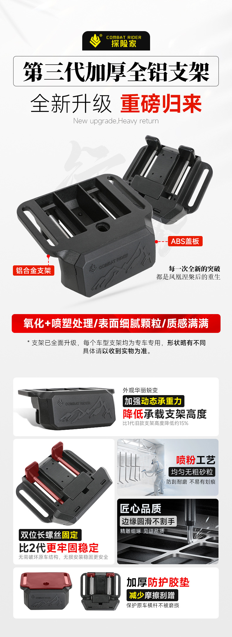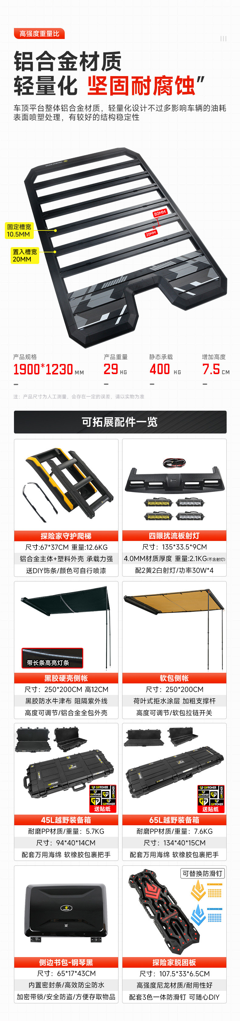 - Heavy-Duty Construction: Engineered from high-strength aluminum alloy and steel to withstand rigorous off-road conditions and maximize load capacity.