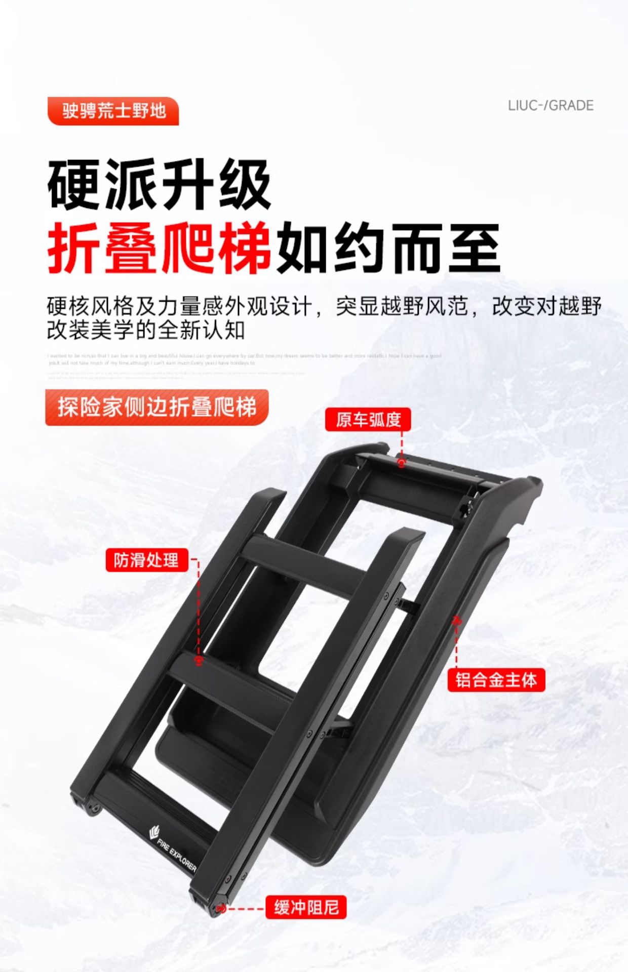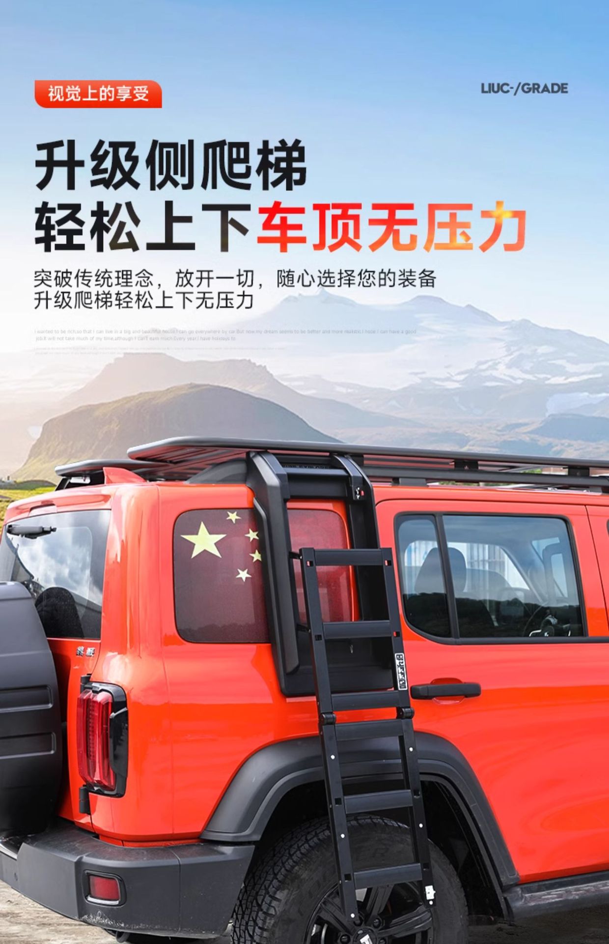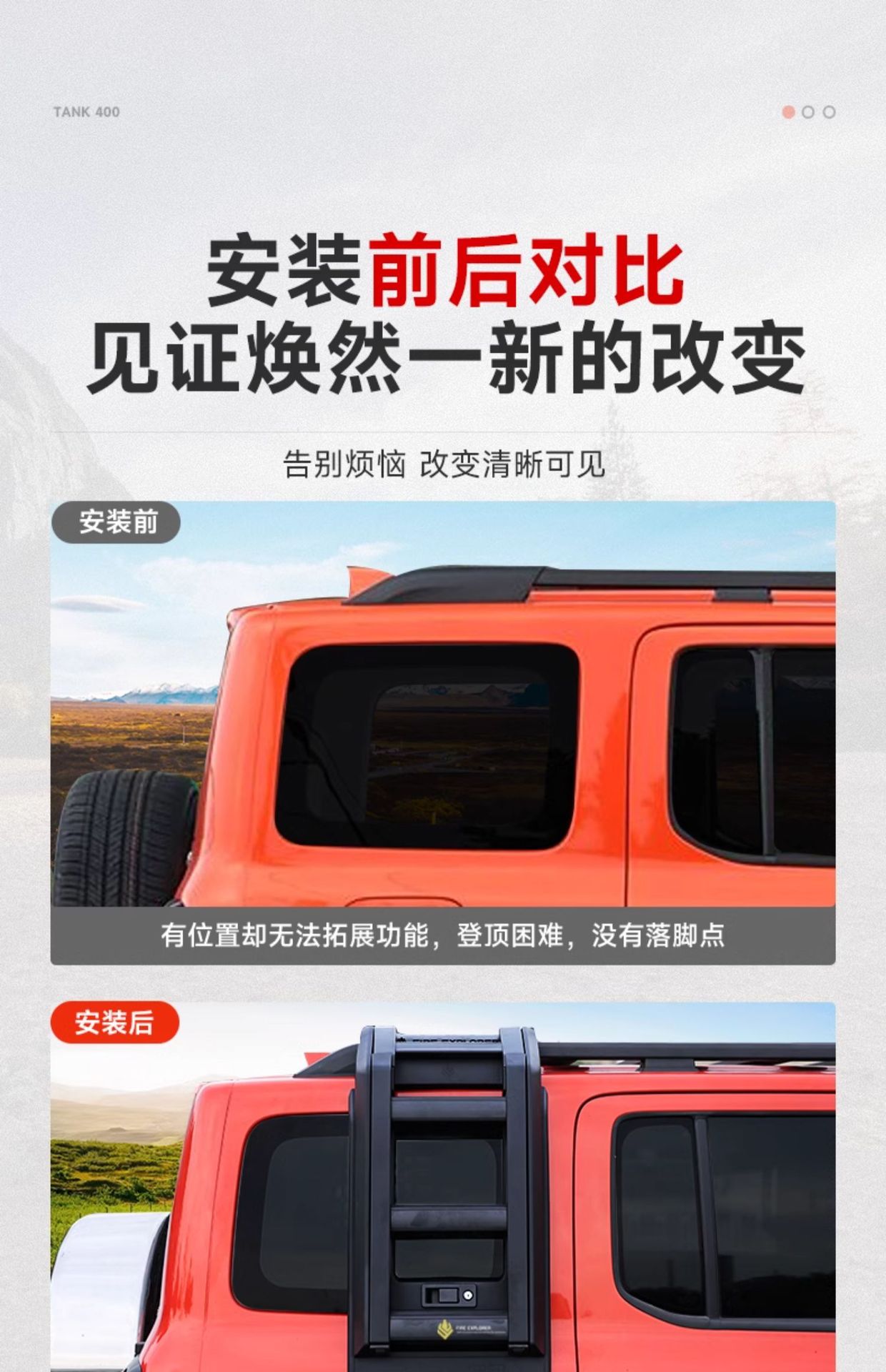 Off-Road Side Ladder for Tank 300, Foldable Roof Rack Extension Platform Climbing Step