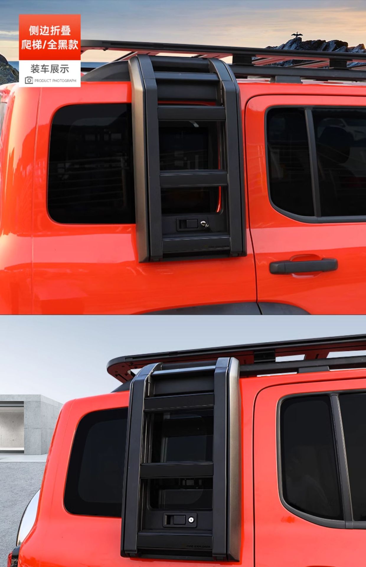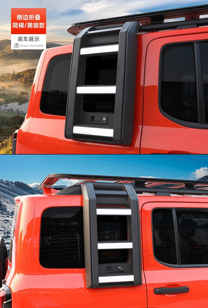 Tags: exterior cargo access, foldable car ladder, off-road accessories, roof rack step, side ladder, utility ladder, vehicle climbing step