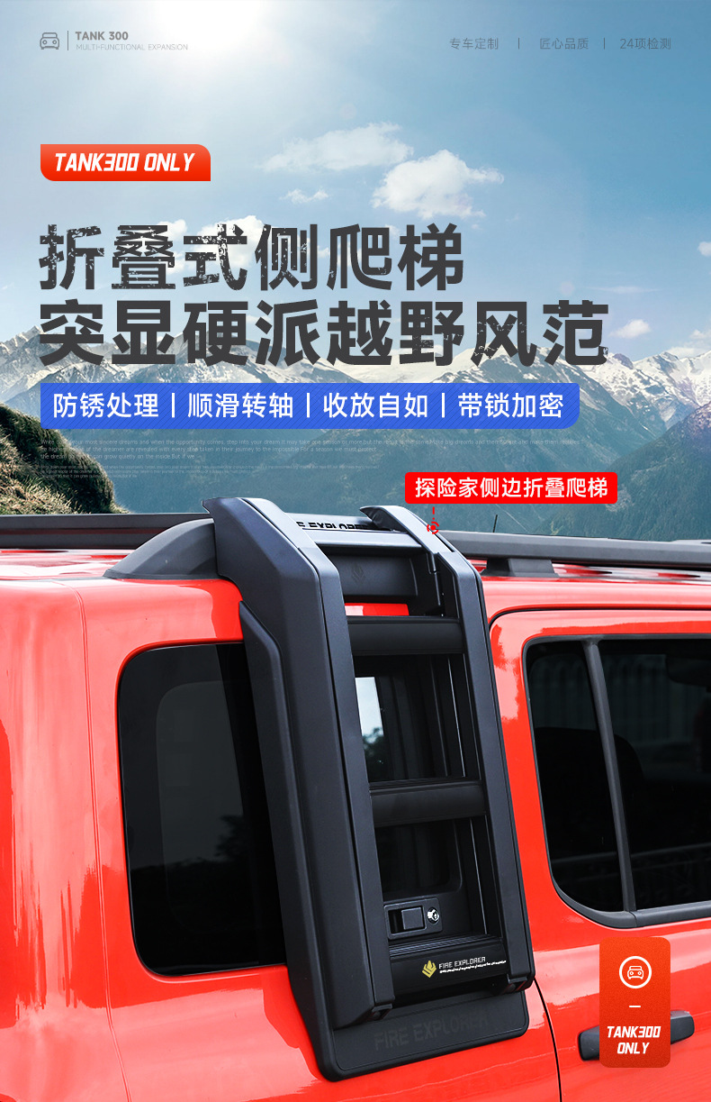 Upgrade your Tank 300 with this foldable side ladder. Durable, space-saving design provides easy access to roof racks and gear for off-road adventures. Order now!