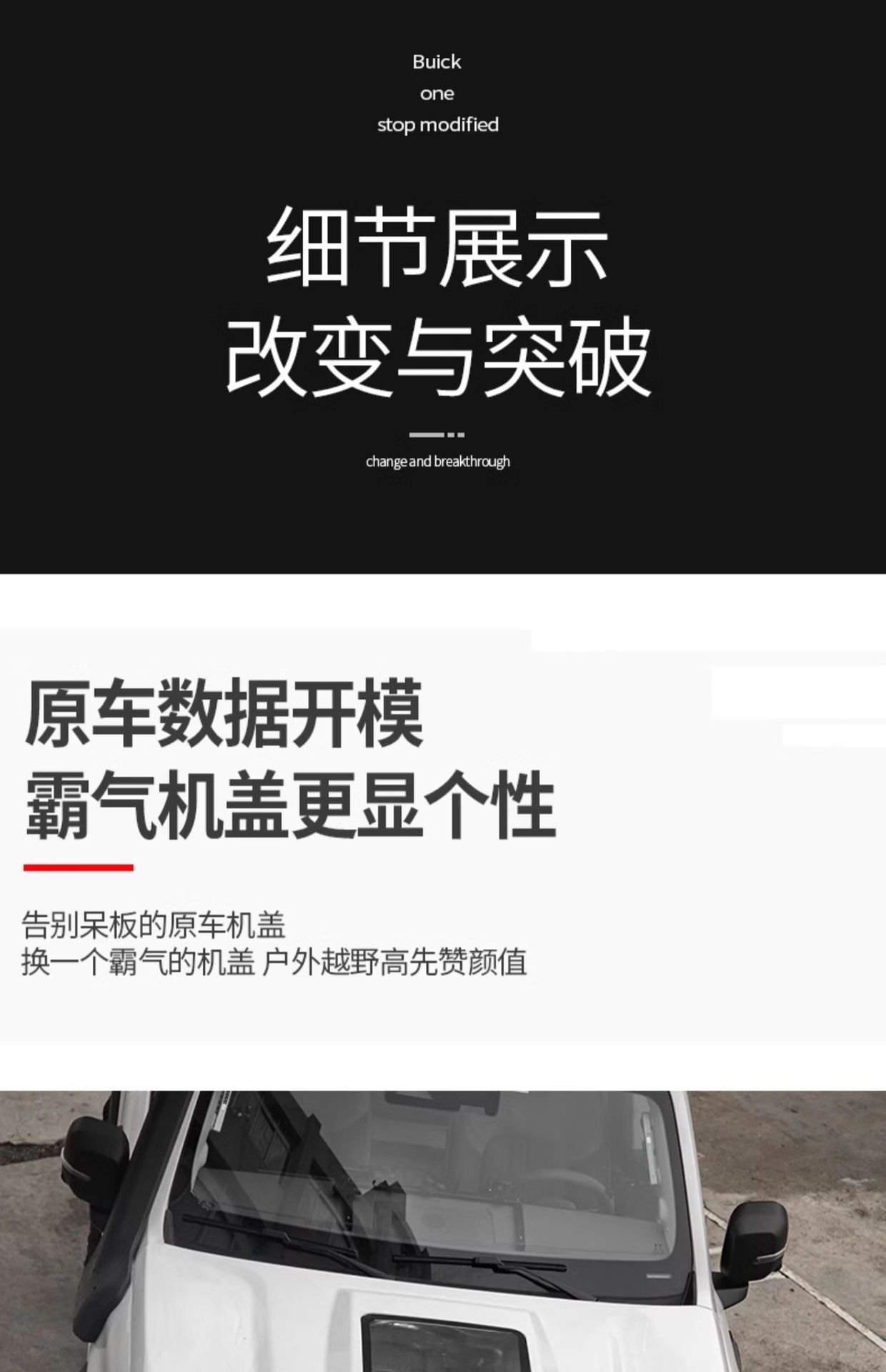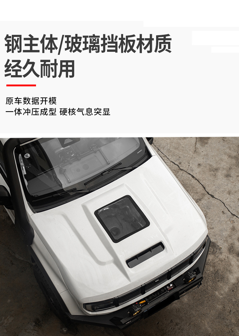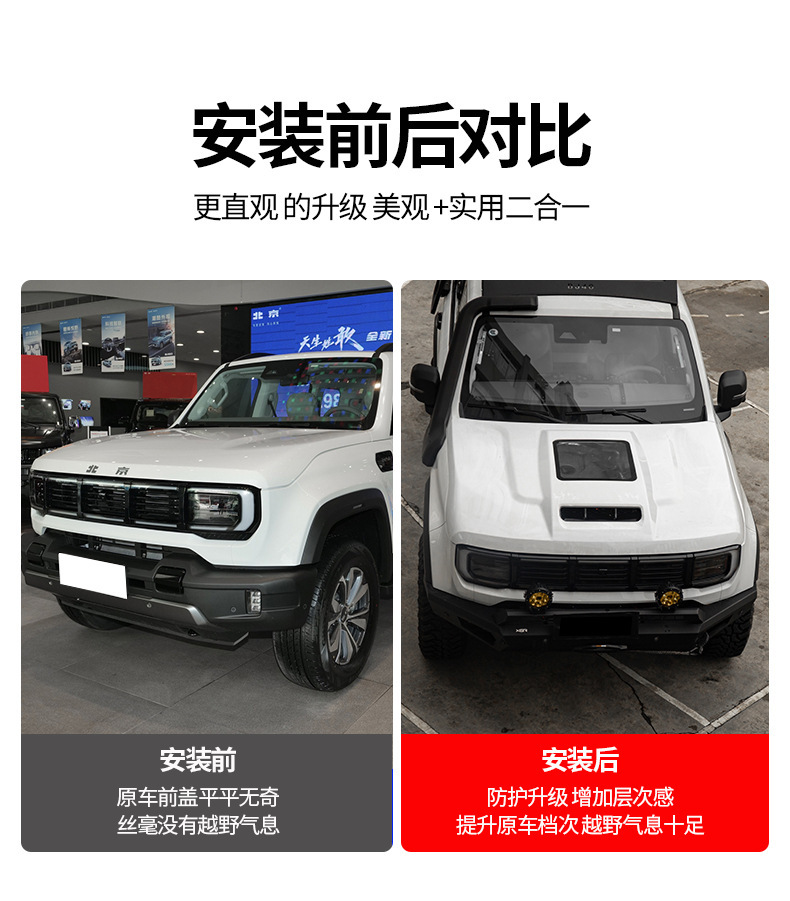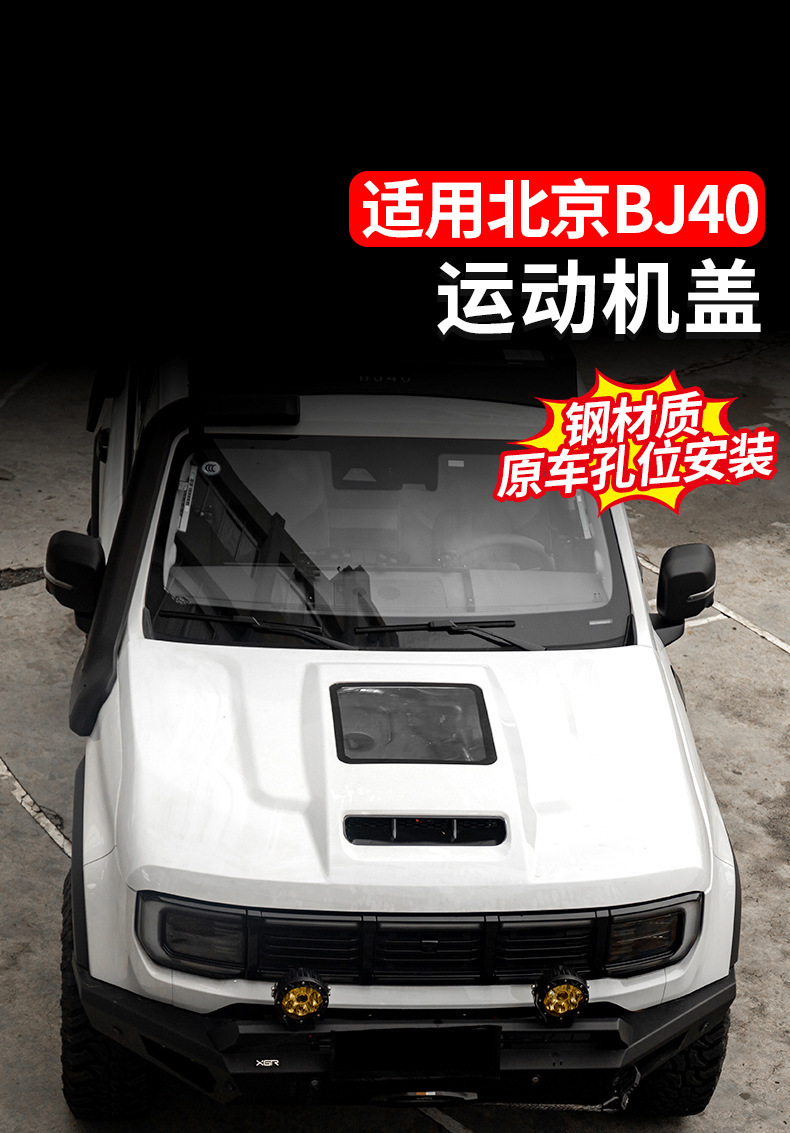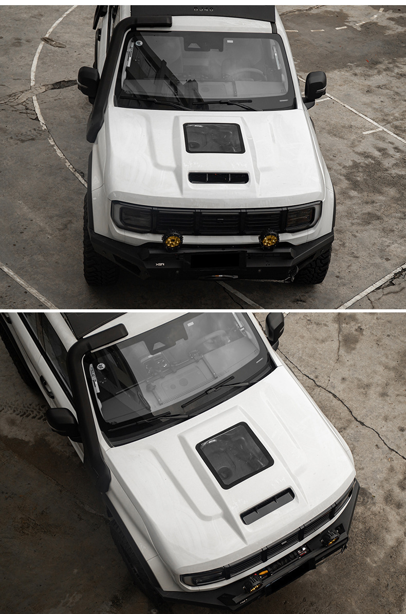 - Custom fit engine hood designed specifically for 2024 BJ40 off-road modifications.