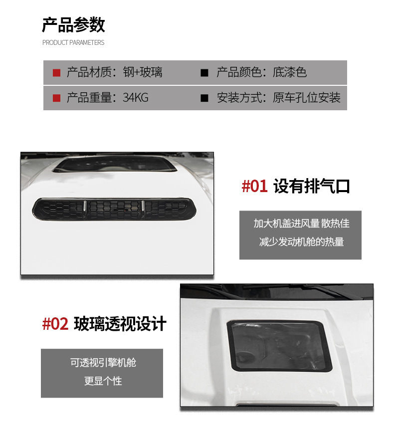 Tags: BJ40 exterior parts, car vent cover, heavy duty car hood, intake vent modification, muscular hood bonnet, off-road engine hood, vehicle styling accessories