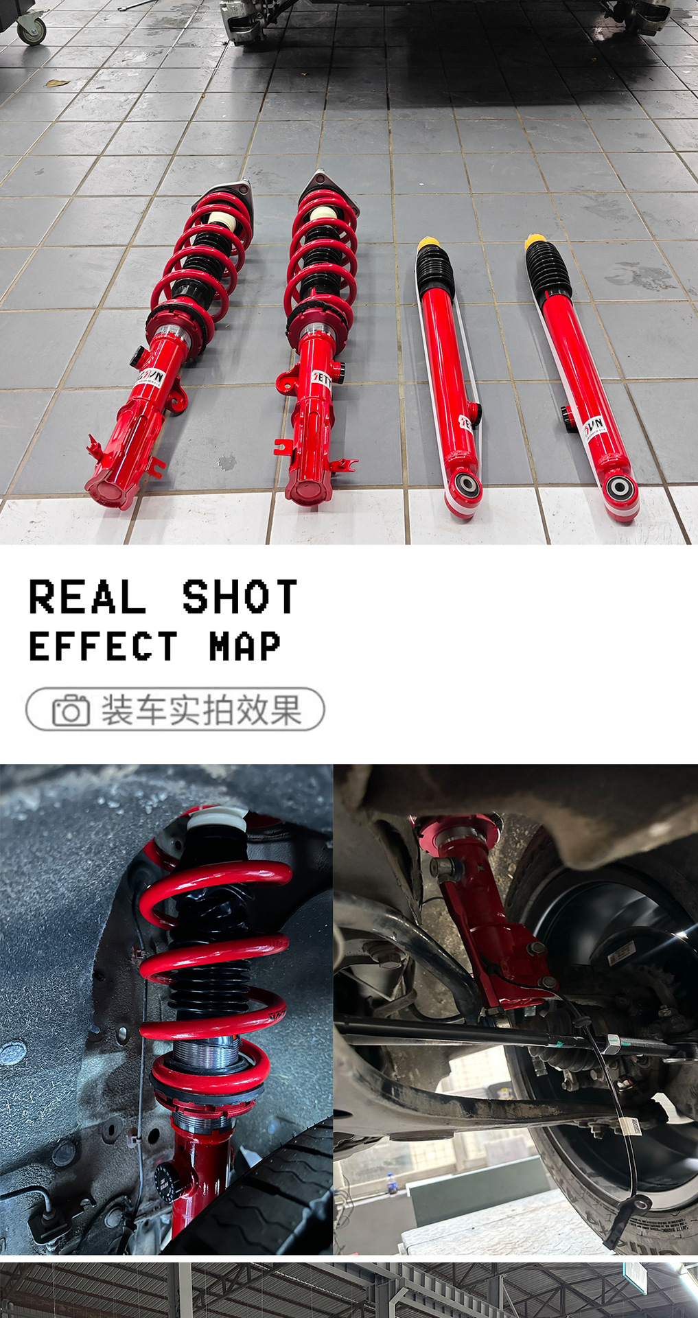 | Specifications | A pair of front shock absorbers, Rear shock absorber plus a pair of springs, Front and rear 8 piece set, Front and rear 10 piece set |