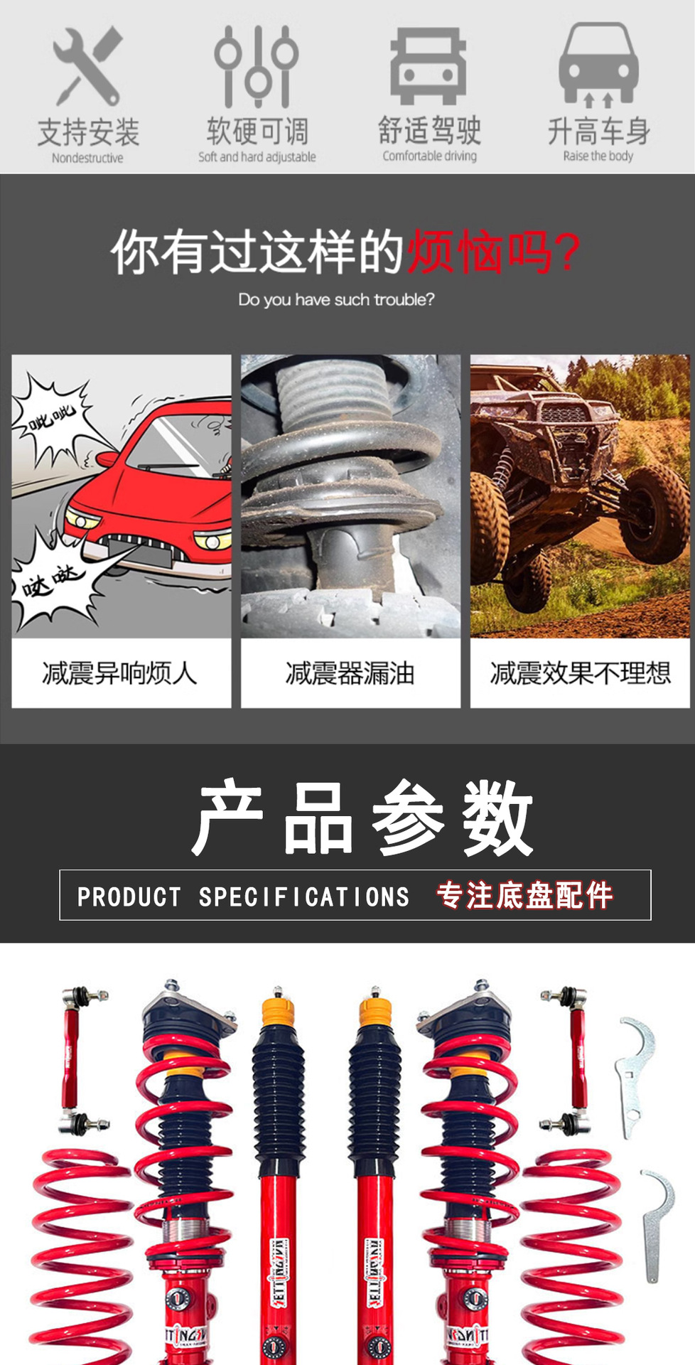 - Adjustable coilover structure allows for customized ride height and enhanced ground clearance for Jetour T2 models.