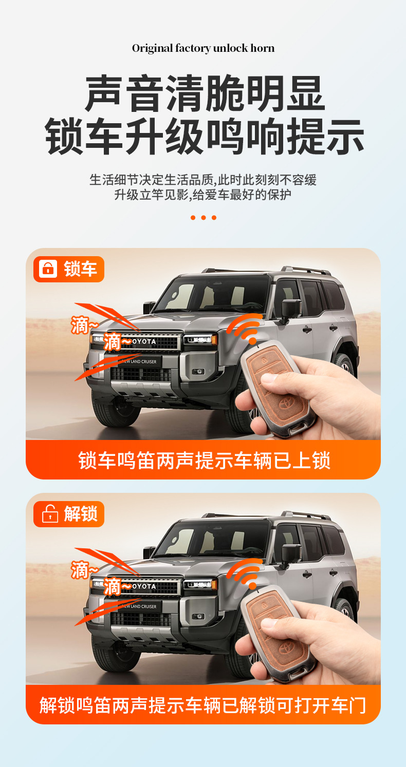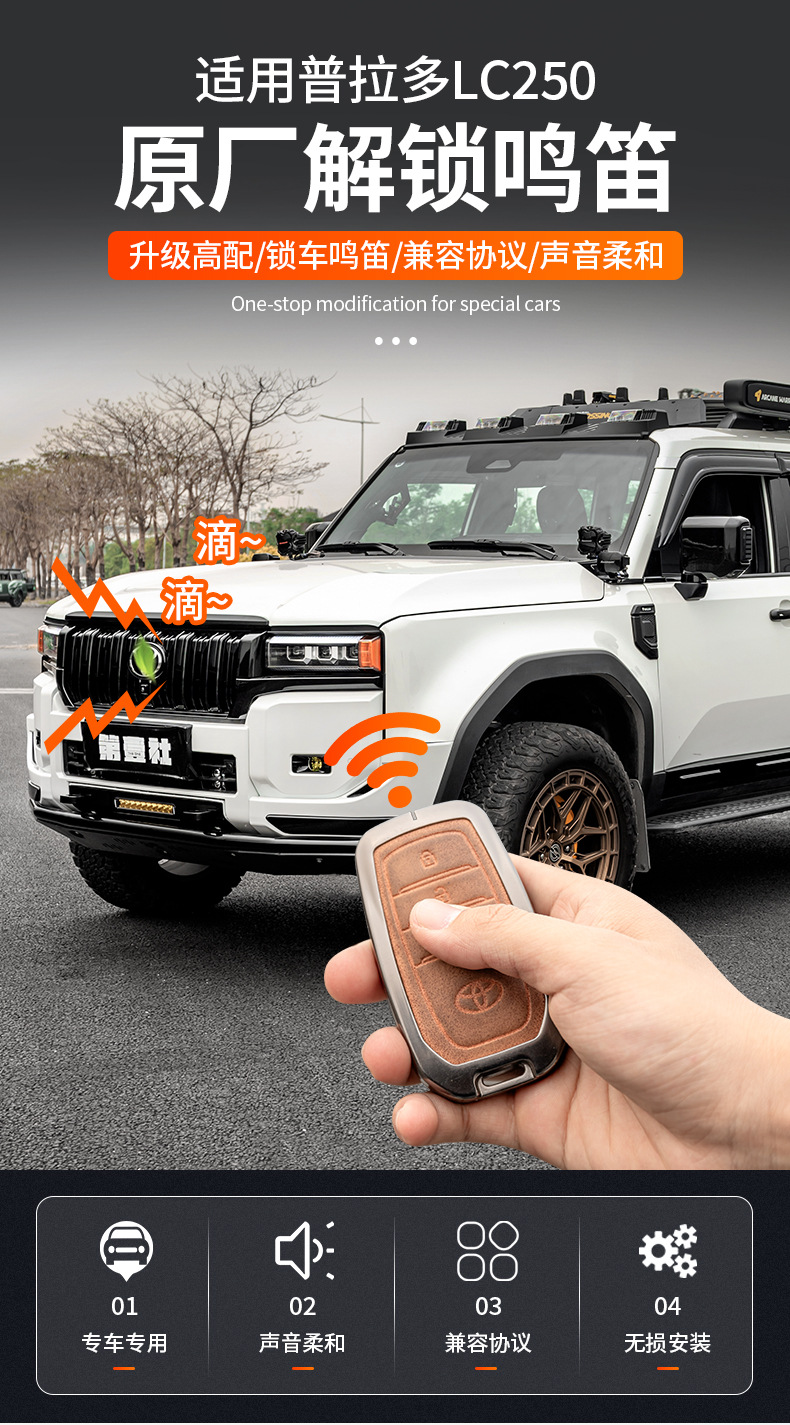 - Specifically designed for the 2024-2025 Land Cruiser Prado LC250 to enable the unlock and lock confirmation sound.