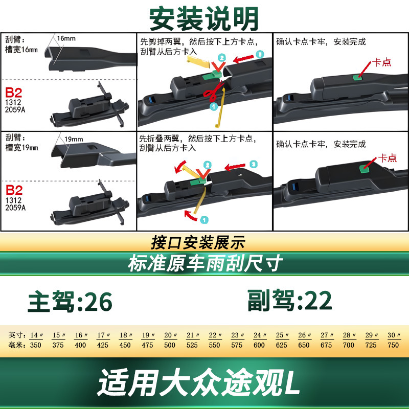 Tags: automotive window cleaning, car exterior accessories, frameless wipers, silent wiper refills, VW Tiguan L parts, windshield wipers, wiper blades