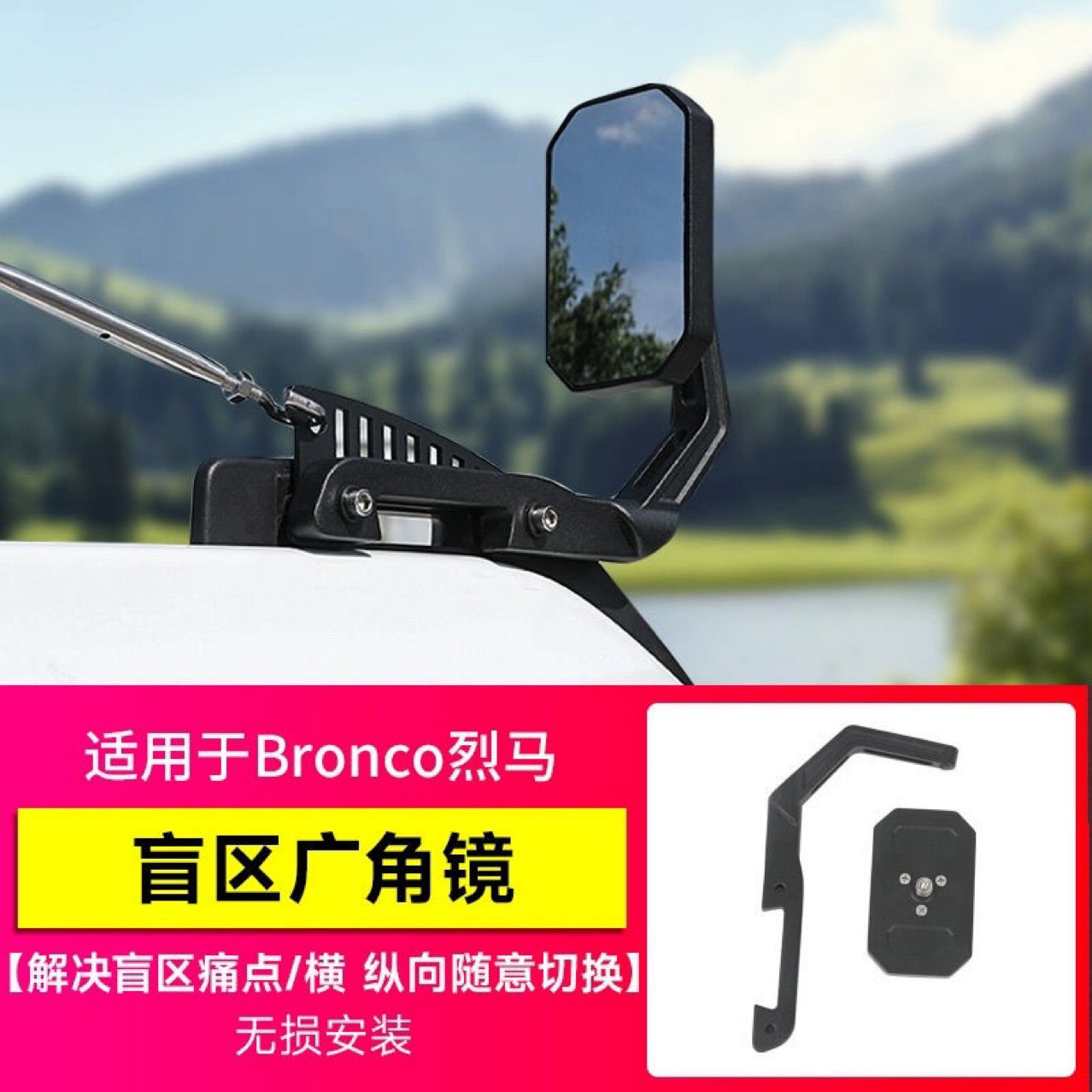 A: No drilling is required. This mirror is designed for a non-destructive installation, utilizing the existing accessory mounting points found on the Ford Bronco's exterior.
