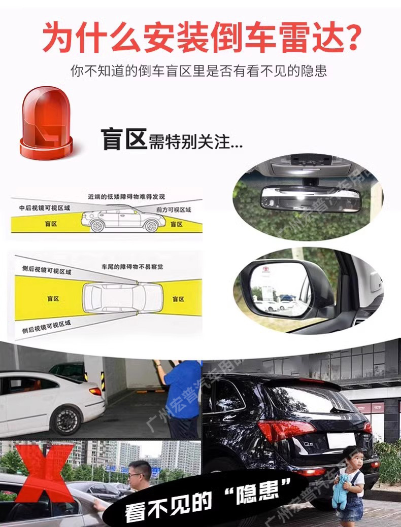 - High-sensitivity ultrasonic sensors provide accurate distance detection to safely navigate obstacles during reversing.