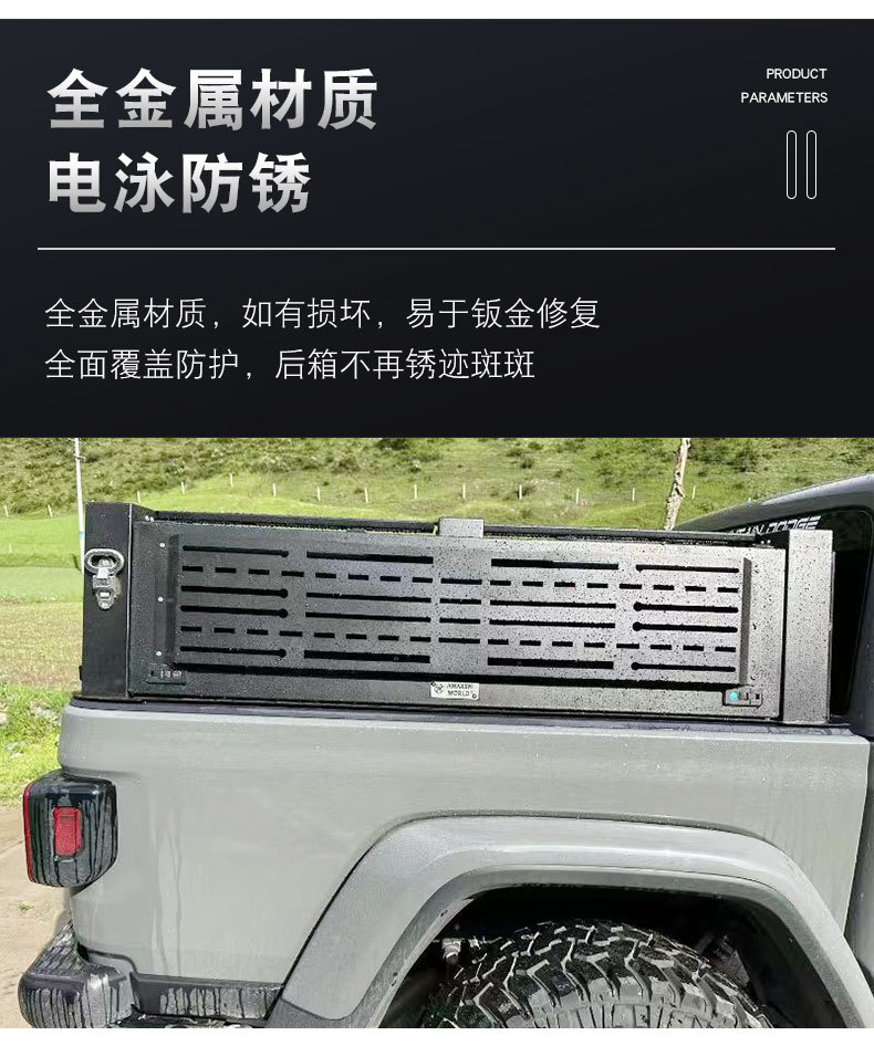 Upgrade your pickup with this multi-functional manganese steel bed canopy featuring a unique tri-opening design for easy access and superior cargo protection.