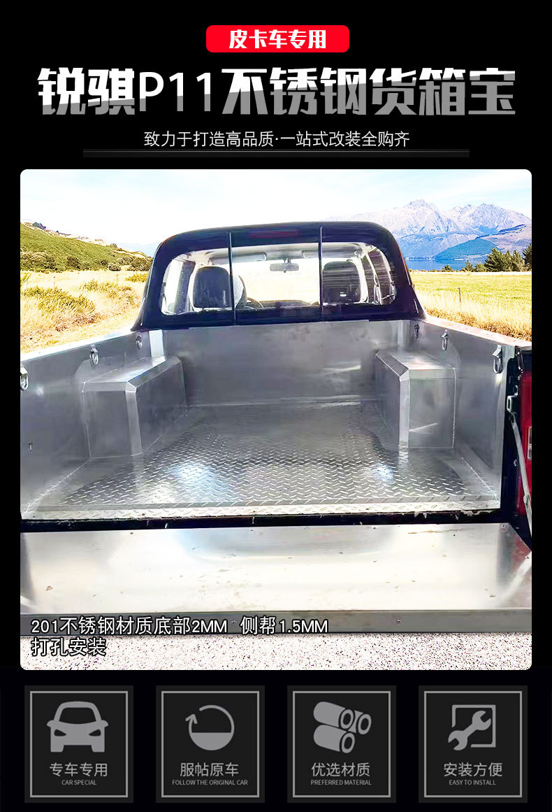 Pickup Truck Bed Liner 201 Stainless Steel Cargo Protection Cover for Zhengzhou Dongfeng Rich 7 P11 Long Bed 1.71m