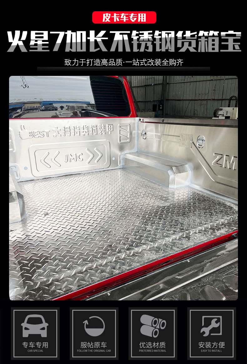 Upgrade your Foton Mars pickup with this 1.757m extended bed stainless steel liner. Provides heavy-duty protection against scratches, rust, and impact damage.