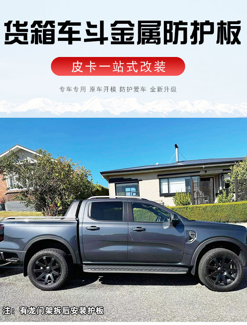 Tags: cargo bed protection, metal truck accessories, pickup box edge cover, ranger exterior trim, tailgate guard, truck bed rail protector