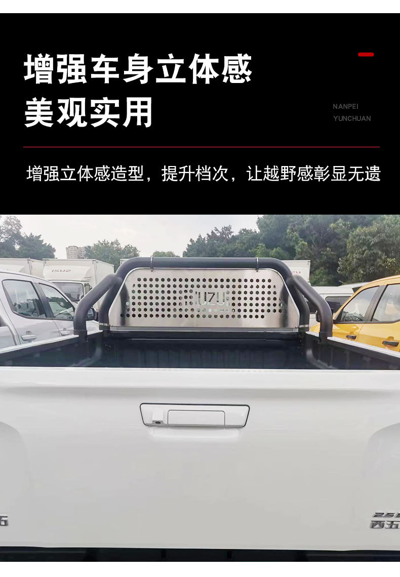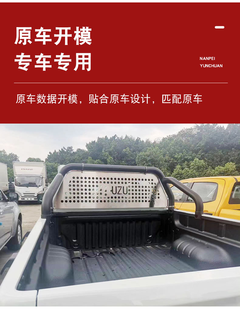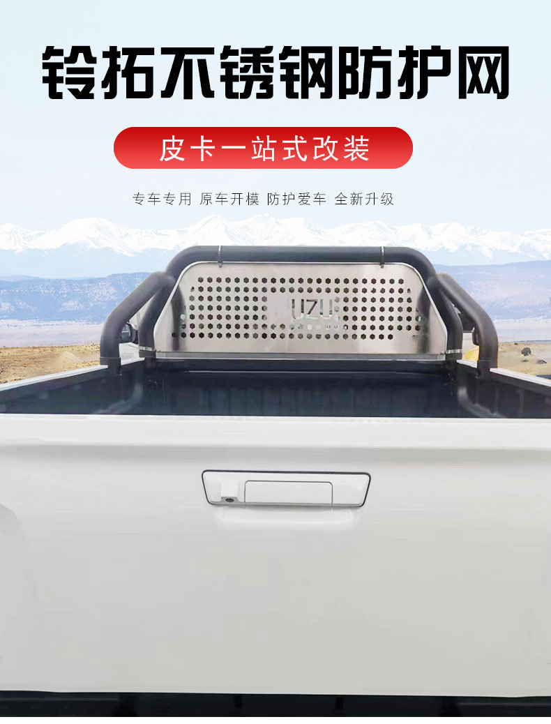 Tags: cabin protection rack, cargo mesh protector, Isuzu Lingtuo accessories, pickup roll bar, rear window guard, truck bed rack, truck exterior trim