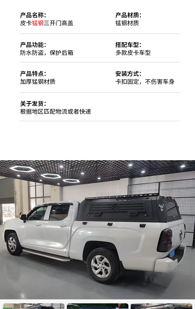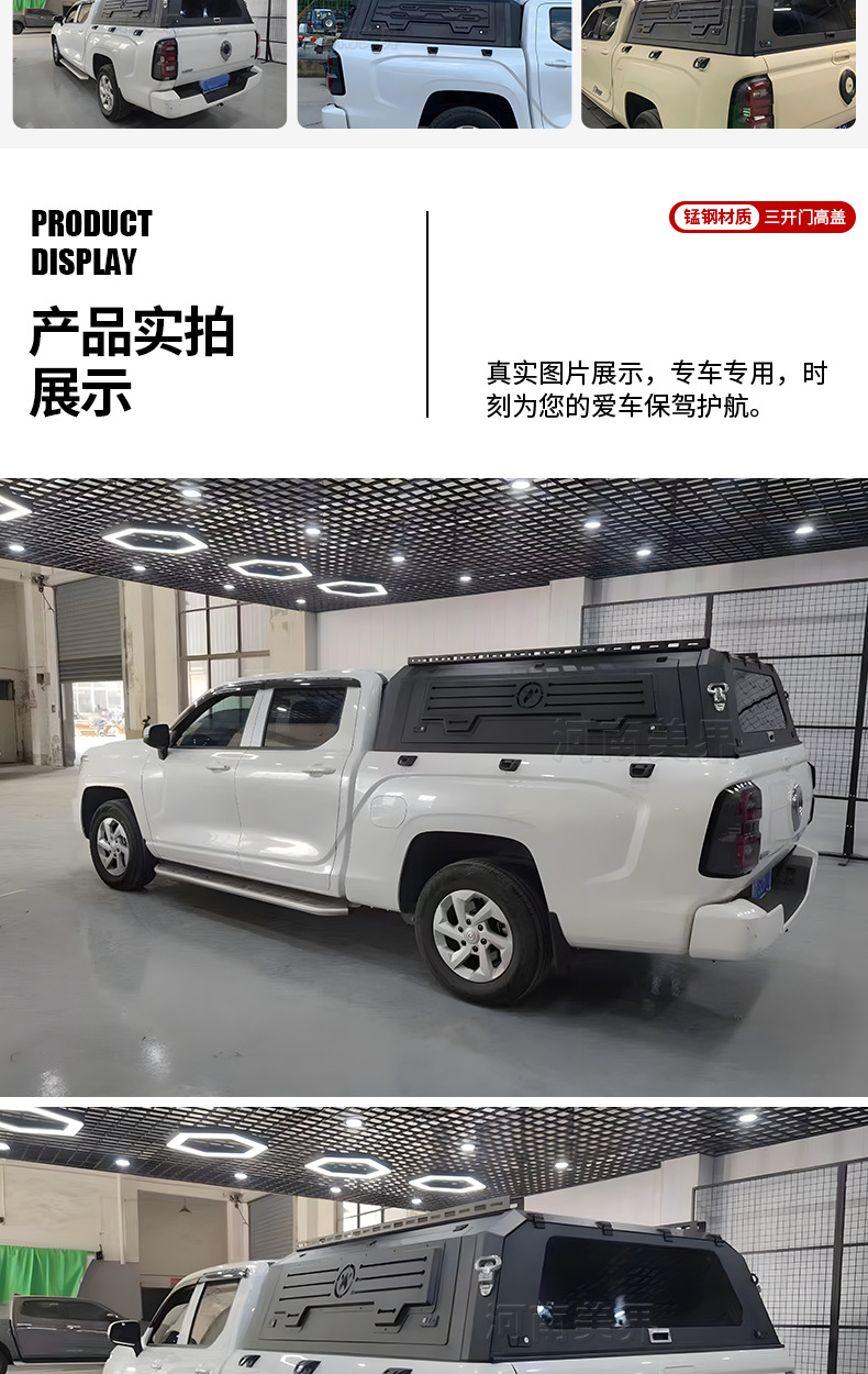 Upgrade your GWM Poer with this durable manganese steel pickup bed topper. Features a three-door opening for easy access and robust cargo protection for off-road use.