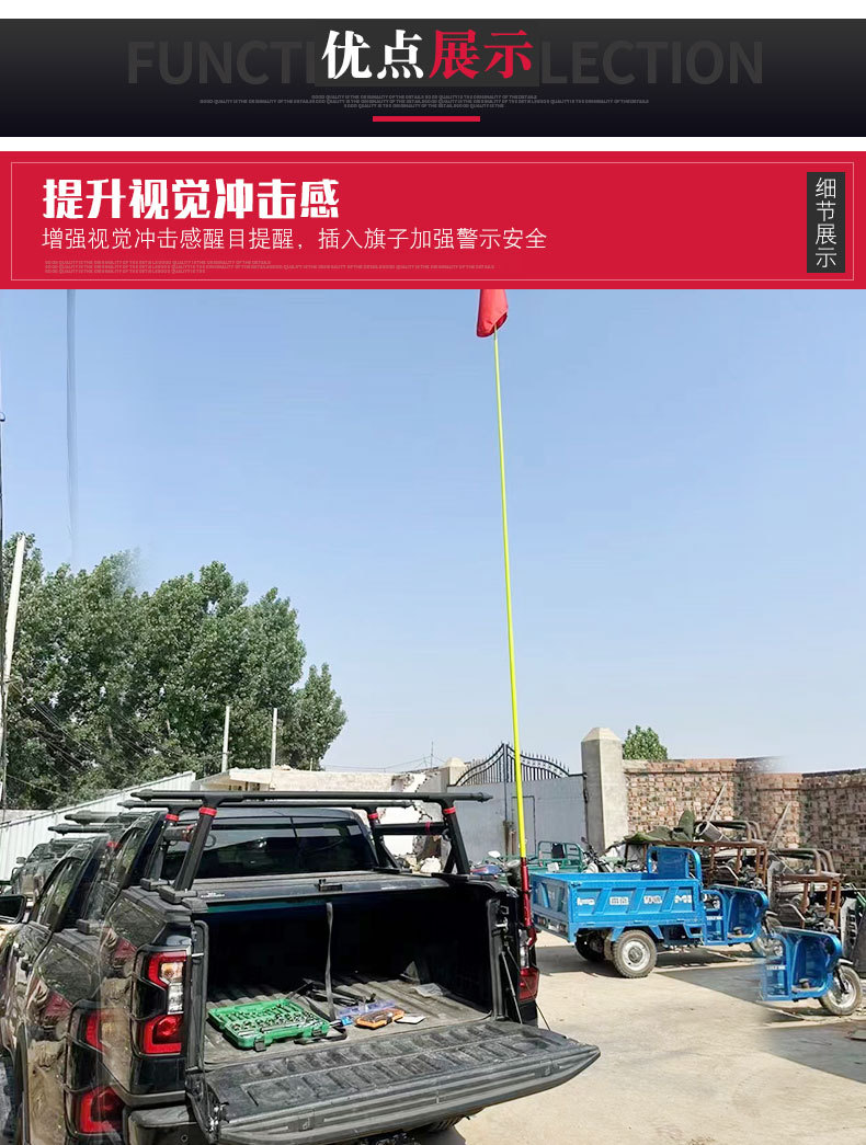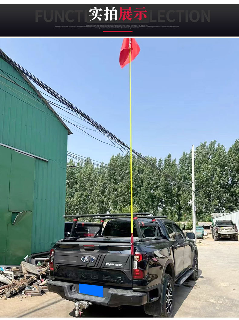- Versatile bracket supports both off-road flagpoles and radio antennas, enhancing vehicle utility and communication.