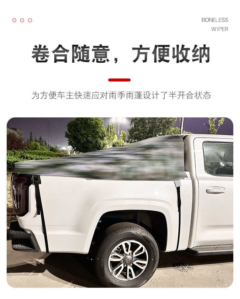 - Features a flexible retractable structure allowing for easy cargo access while keeping the truck bed clean and dry.