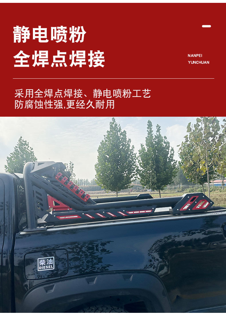 Upgrade your pickup with this heavy-duty steel roll bar and protective guard rail. Durable construction designed for D-MAX, Navara, and JMC truck bed security.