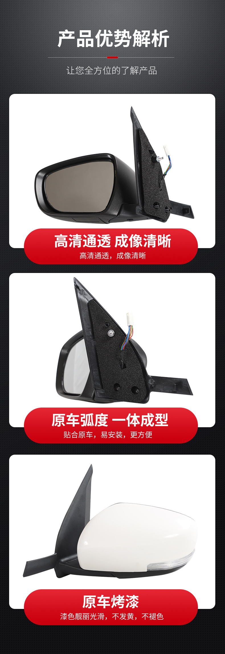- Rigidly tested to withstand extreme weather conditions while maintaining clear rear view functionality.