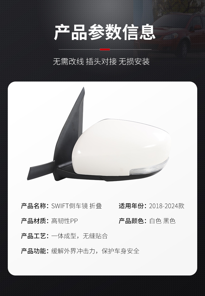 Power Folding Side View Mirror Assembly for Suzuki Swift 2016-2024 Rear View Door Mirror