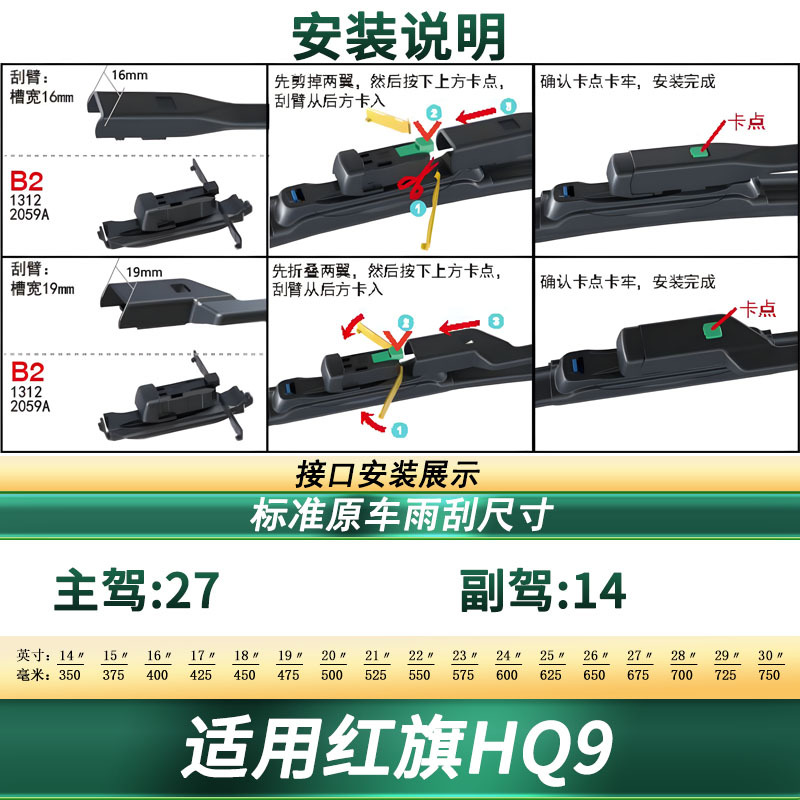 - Precise fitment designed specifically for Hongqi HQ9 models ensuring optimal windshield contact and clearing performance.
